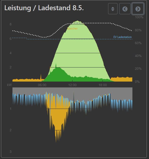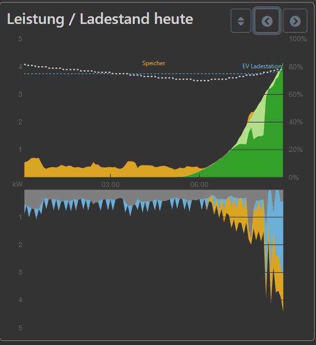 Bei mir wird, obwohl das Auto gar nicht an der Ladestation steckt, den ganzen Tag Ladespitzen angezeigt - siehe Bild.