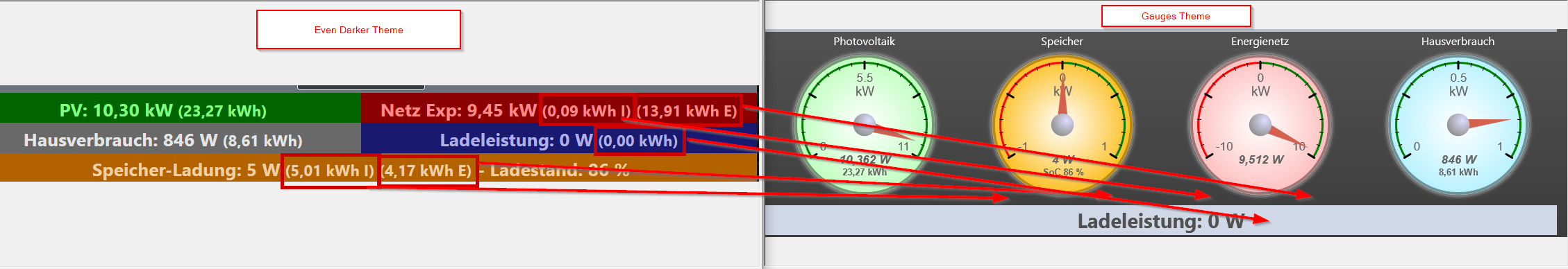 Ich würde mir wünschen, dass die zusätzlichen Daten aus dem "Even Darker" Theme (die im oberen Bereich nicht im "Gauges" Theme mit enthalten sind) im "Gauges" Theme entsprechend mit implementiert werden: