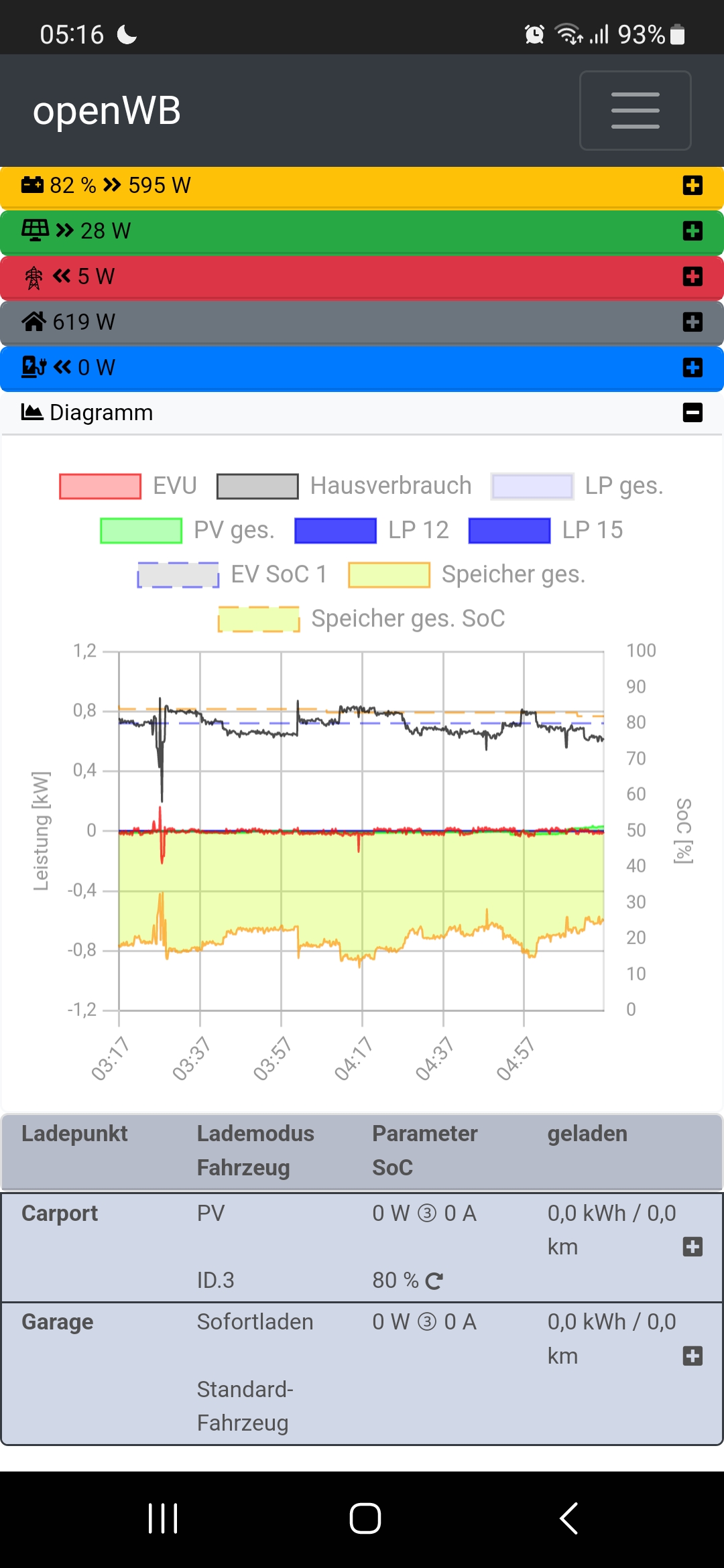 In der Übersicht bei Modus bleibt: "Lade Daten" bei allen Geräten, Verbrauch und Laufzeit passt.