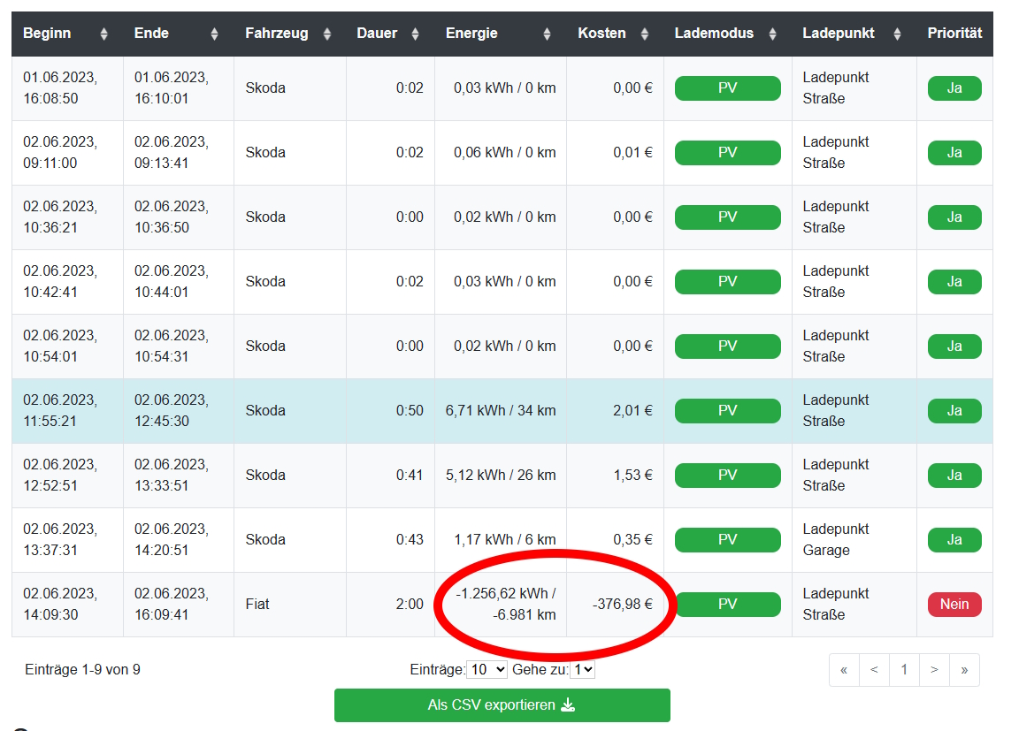 Das Diagramm sieht ab 13:36 schon komisch aus (als wenn 2 Fahrzeuge geladen werden), der FIAT wurde aber erst ab 14:09 angesteckt.