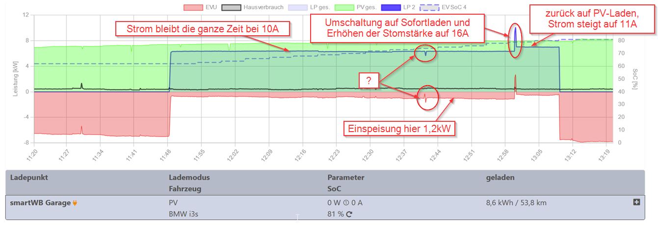 Zudem dachte ich auch, dass die SmartWB (Firmware 2.4.2 und EVSE-Firmware 1.8 (Register 1005: 18)) mit openWB 2.0 jetzt eigentlich in kleineren Schritten als 1A regeln kann. Jedenfalls hat das aiole hier und im EVSE-WiFi-Forum mehrfach geschrieben. Bei mir tut's dass offensichtlich nicht. Muss man dafür noch irgendwo was einstellen?