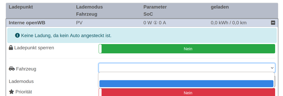 Unter Status sehe ich, dass die Spannungen aller Phasen exact 230V sind. Wenn ich ein Auto anstecke, läd dies einphasig, ohne dass ich über die Openwb Einfluss nehmen kann.