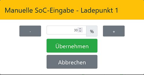 Bei Einstellung Manuel SoC kann ich keinen SoC Wert des Fahrzeugs eintragen. Bei Klick auf das Stiftsymbol geht zwar eine Eingabemaske auf, wenn ich eine Zahl eintrage wird sie mit "Übernehmen" aber eben nicht übernommen. Beim Laden zählt aber der Zähler hoch.