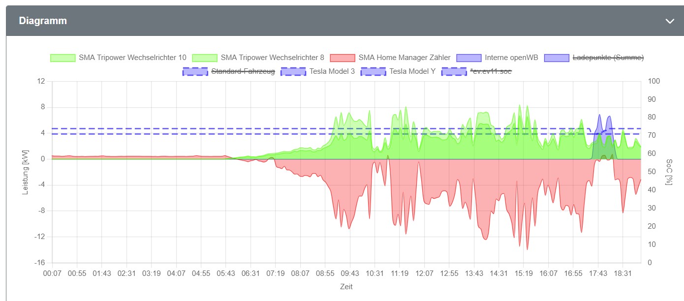 ph3 hat geschrieben: Mo Jul 03, 2023 7:27 am Mir ist nun aufgefallen, dass in der Tagesauswertung der Verbrauch zwar unter in den "Summen" angezeigt wird, aber nicht in Diagramm. Also die schwarze Verbrauchslinie fehlt komplett. Dargestellt wird die PV-Produktion, Einspeisung/Bezug und die WB.