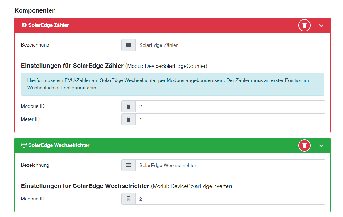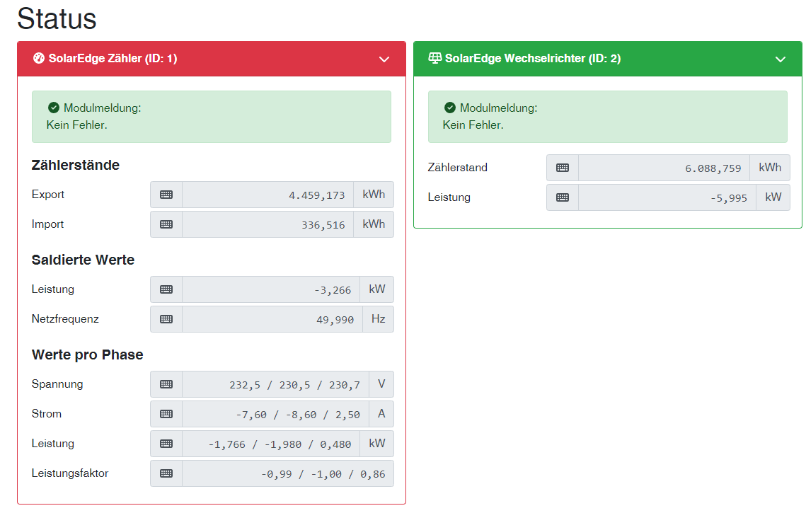 ich habe heute die Version 2.x (db321f5ab) aufgespielt. Leider werden mir negative Werte beim Zähler und Wechselrichter angezeigt. Der negative Wert entspricht dem Wert der aktuell eingespeist wird. Wechselrichter habe ich einen SolarEdge SE12,5k und ein InlineEnergymeter von Solaredge. Mit der Version 1.9 habe ich diese Probleme nicht.