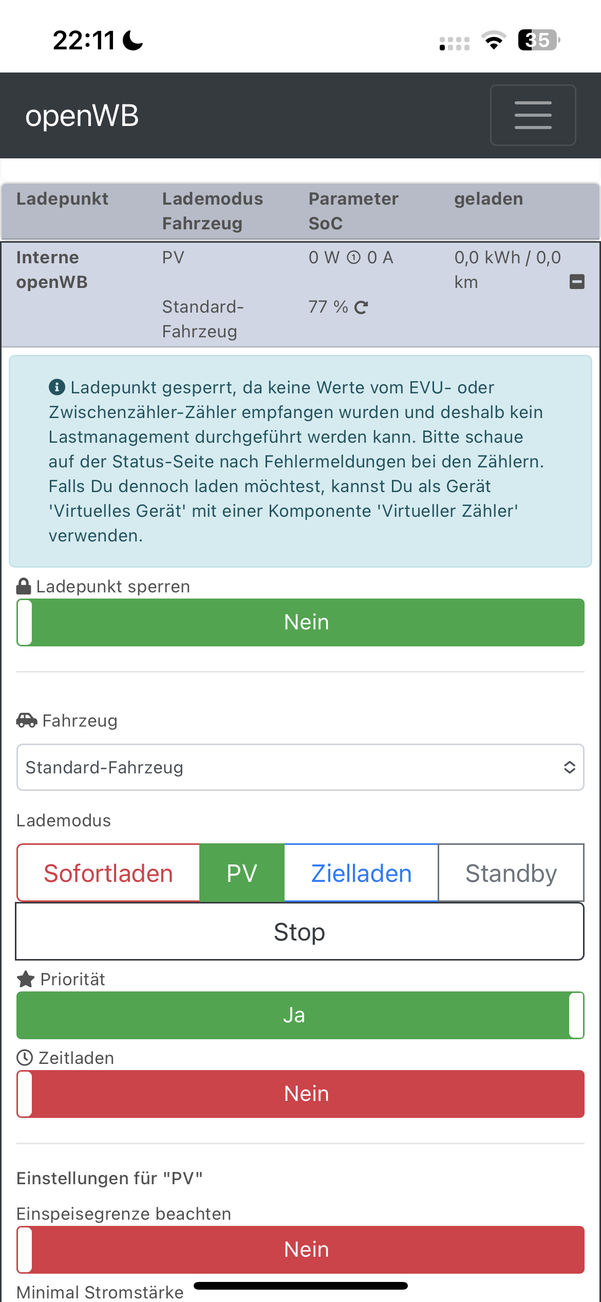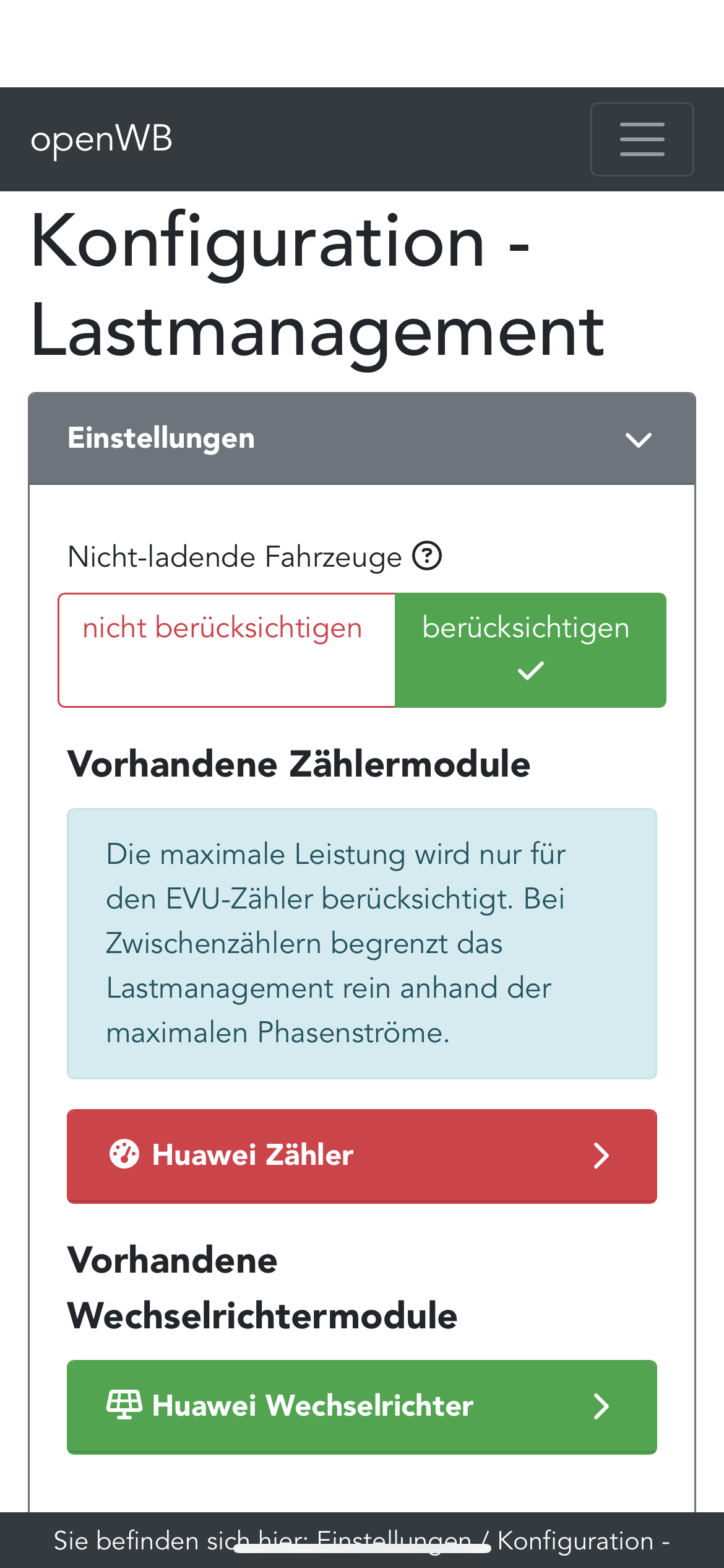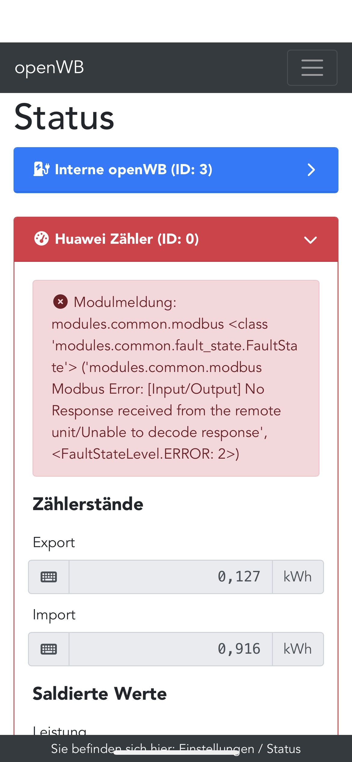 Meine OWB Series 2 custom sperrt den Ladepunkt, weil es keine Werte vom EVU bekommt (Huawei).
