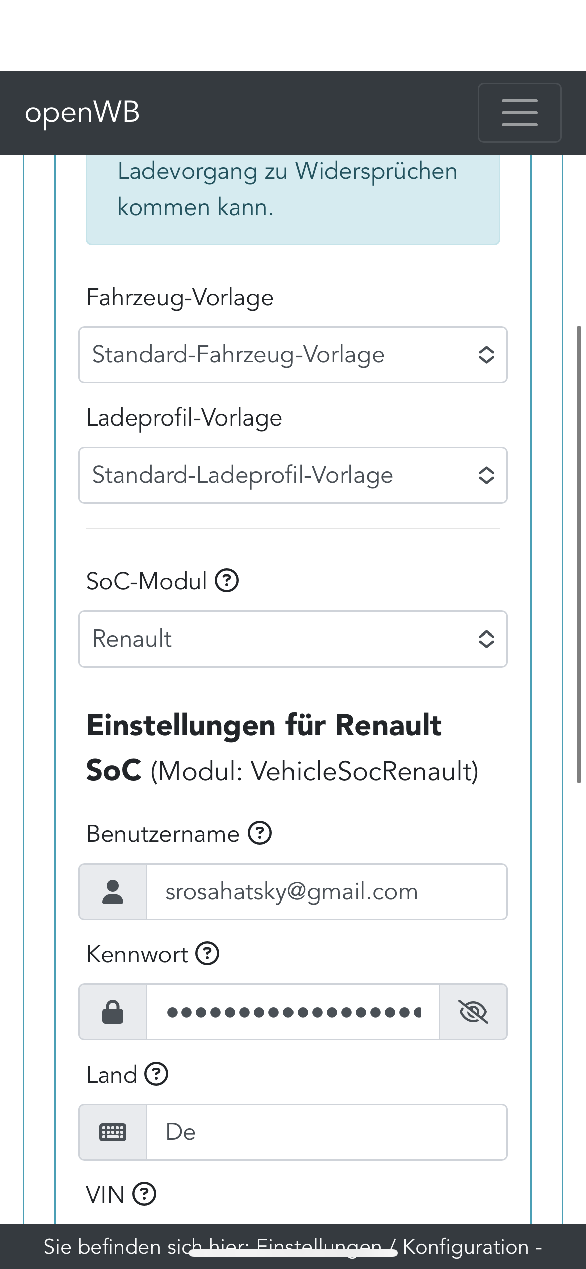 Wie gesagt: Die owb meckert, dass sie keine Werte vom Huawei EVU bekommt und hört sofort mit dem Laden auf.