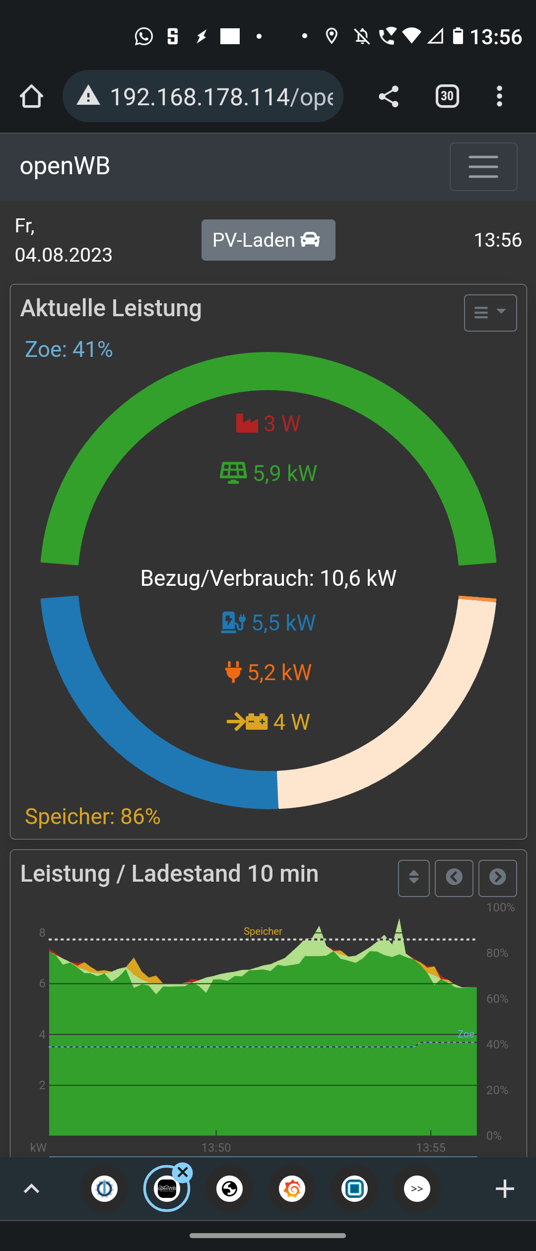 Ein Freund hat eine neuere IDM Aero und hier wird über Kommunikation SolarLog die aktuelle Erzeugung bzw der aktuelle Verbrauch angezeigt. Die PV-Überschuss Regelung erfolgt genauso gut/schlecht.