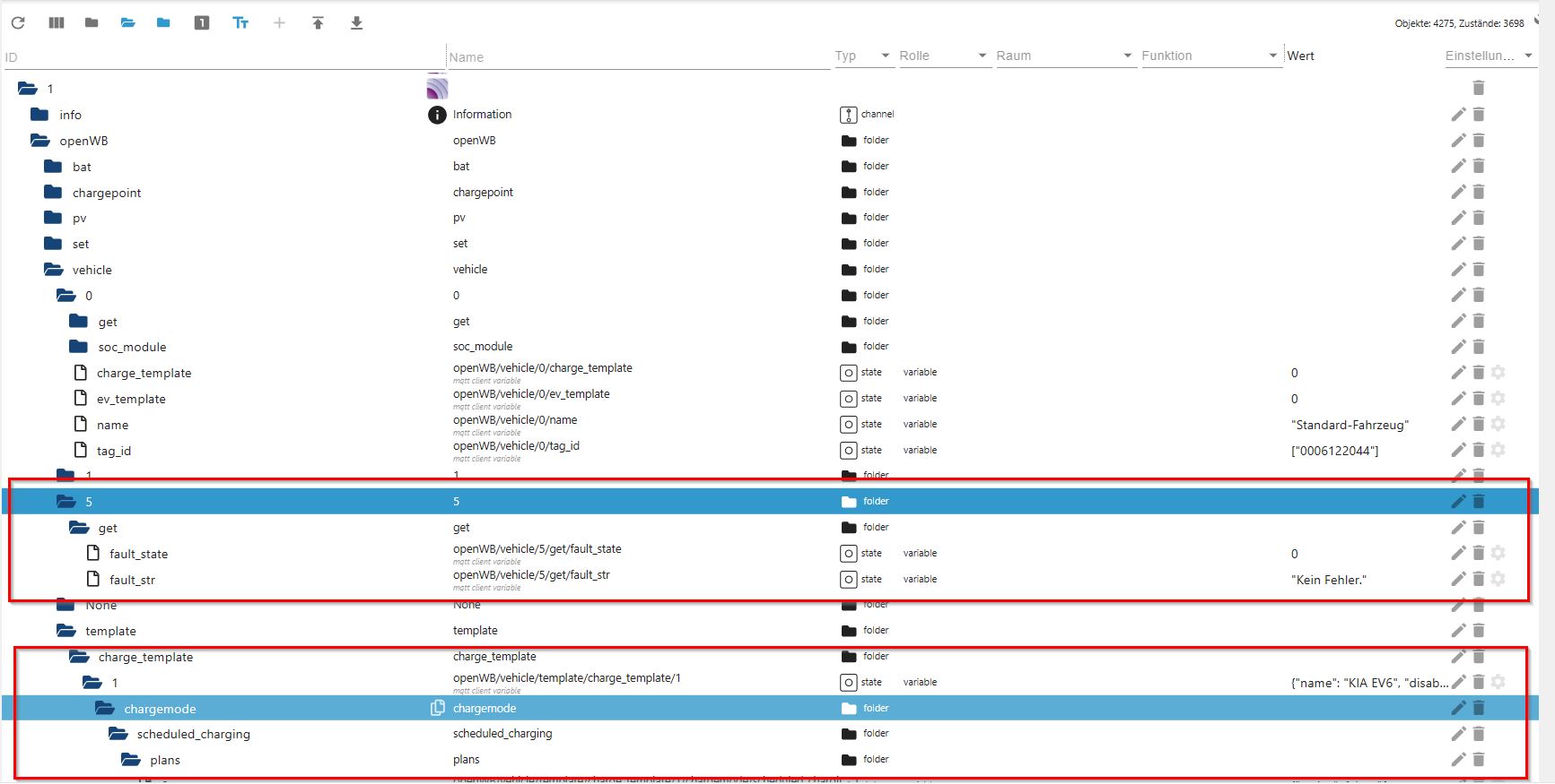 Also bei mir scheun die Datenpunkte irgendwie komplett anders aus und unter vehicle0 finde ich gar nichts nur ein Standart Profil. Mein Ladeprofil sollte eigentlich unter vehickle5 kommen da gibt es aber entweder keinen Datenpunkt oder in ganz anderen Pfaden. Schau Dir mal bitte die Screenshots an. Ist da beim anlegen der Ladeprofile was schief gelaufen ?