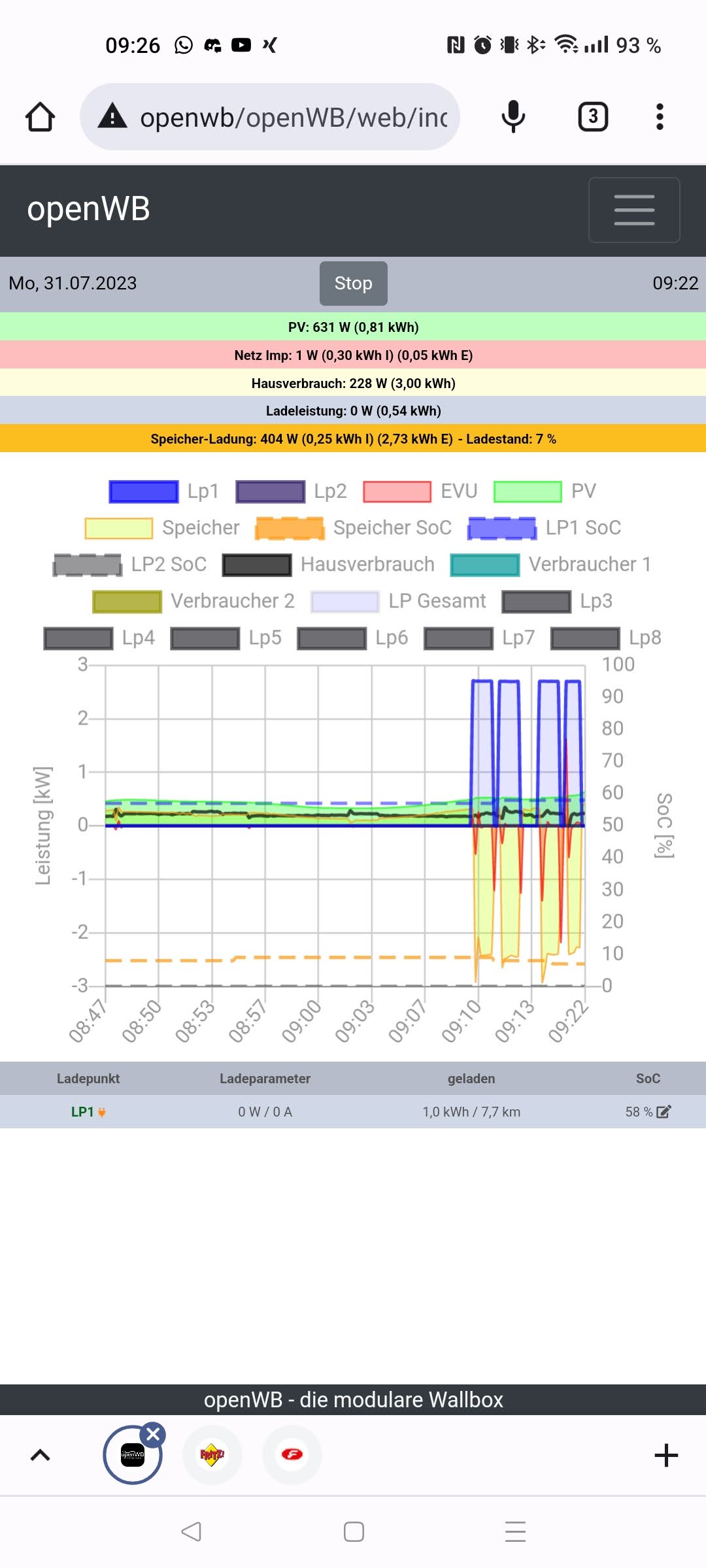 Hat jemand eine Idee, warum die openWB heute morgen versucht hat im PV-Lademodus, mein (über Nacht angestecktes) Auto zu laden, obwohl der Batteriespeicher mit 7% seine untere Grenze erreicht hatte und kaum (~600 W) Strom vom Dach kam und das Auto auch > 50% voll war (Mindestladestand ist auf 20% konfiguriert)?