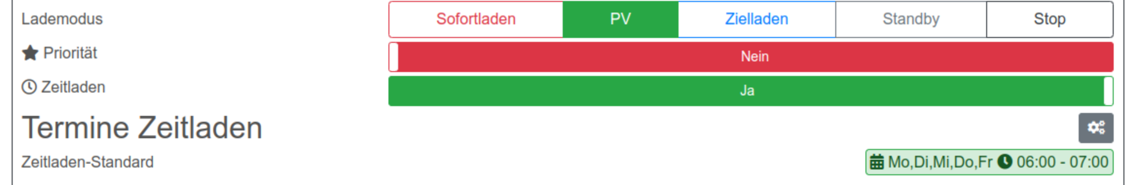 Da nun die Zeit der wenigen PV-Leistung ist habe ich nun umgestellt auf PV + Option Zeitladen aktiviert.derwohat hat geschrieben: Fr Sep 22, 2023 6:54 am Ich habe in meinem Lade-Profil den PV-Lademodus aktiv. Zusätzlich das Zeitladen mit aktivem definierten Zeitplan. Leider wird der Zeitplan immer ignoriert. Ist etwas falsch eingestellt?