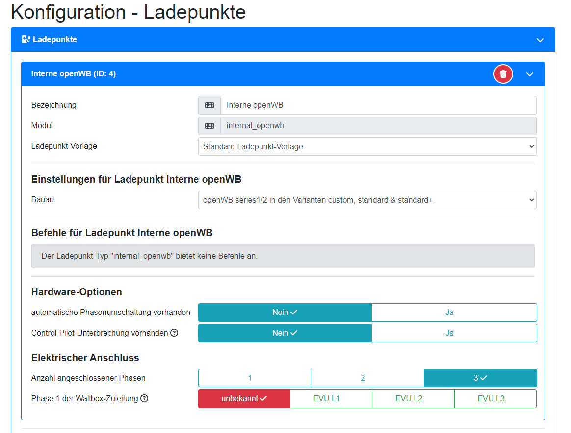 Für den Anfang möchte ich erst einmal, dass das Teil die EVSE und den Stromzähler findet, damit daraus eine ladefähige standalone Wallbox wird. Ich habe unter "Einstellungen -> Konfiguration -> Ladepunkte" einen neuen Ladepunkt angelegt. Doch ich kann nirgendwo mir schlüssige Grundeinstellungen vornehmen. Meine USB Adapter sind als /dev/ttyUSB0 und /dev/ttyUSB1 im CLI sichtbar. Doch wo stelle ich diese in OpenWB ein?