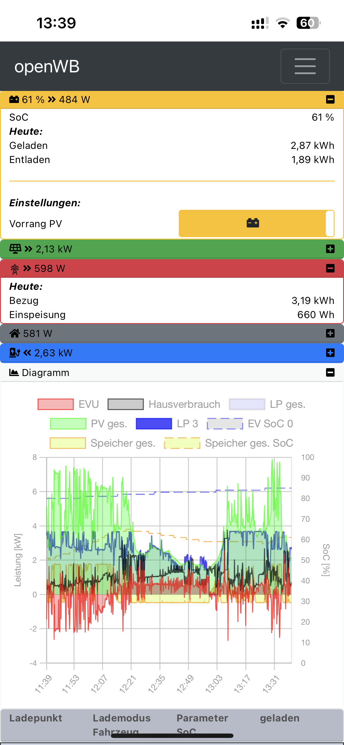 Und wie ist das Verhalten wenn du anstatt PV Speicher Vorrang auf Auto Vorrang stellst?