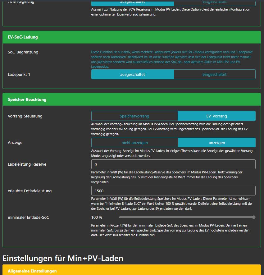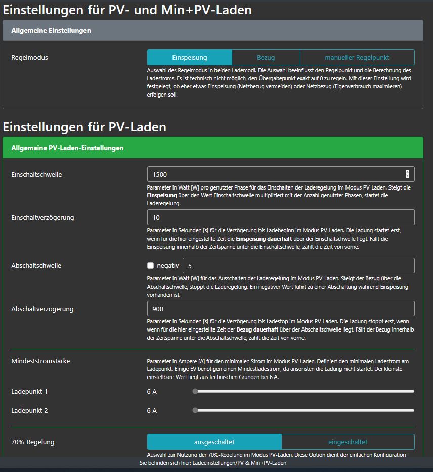 Ladeeinstellungen => PV & Min+PV: