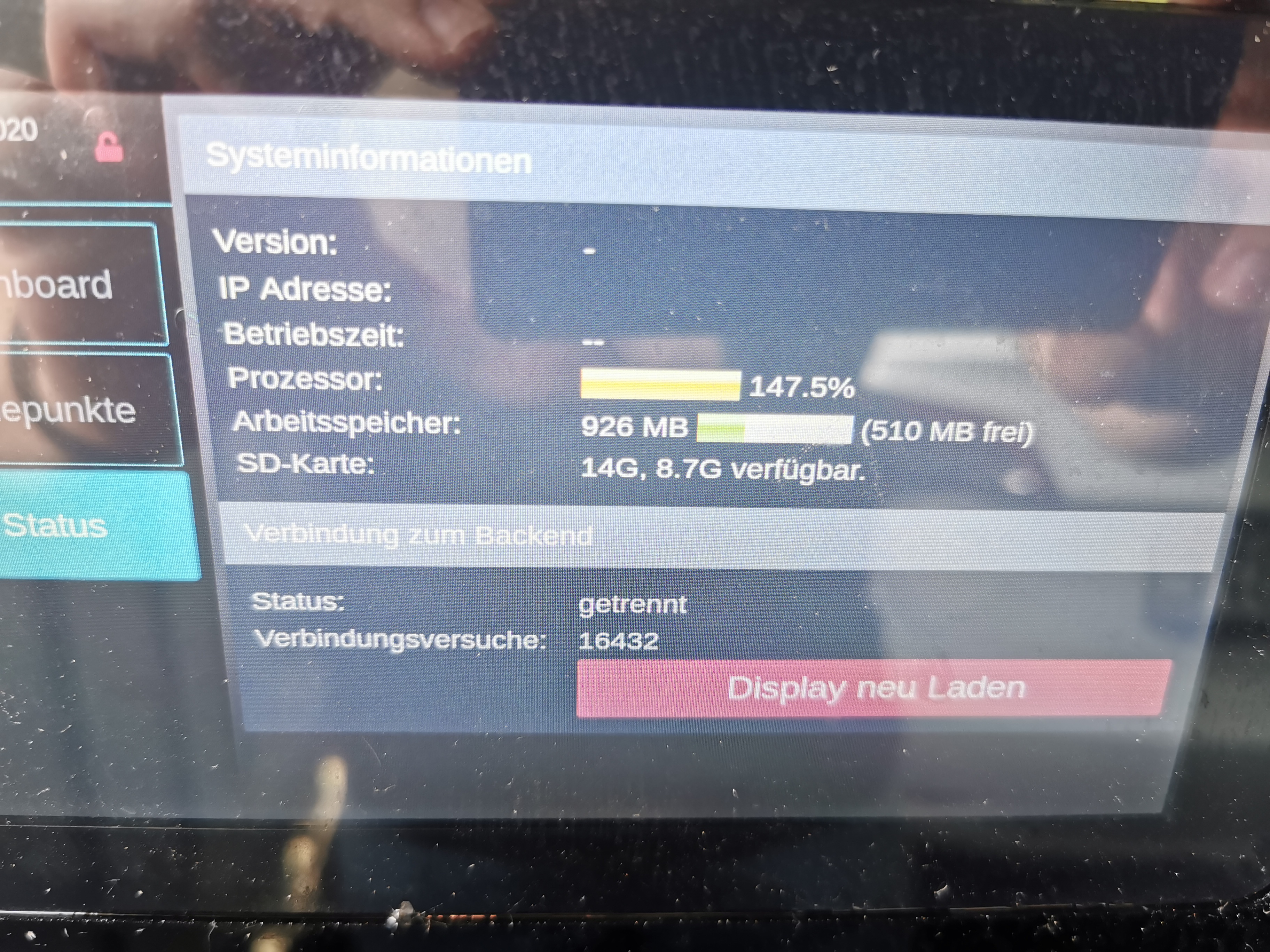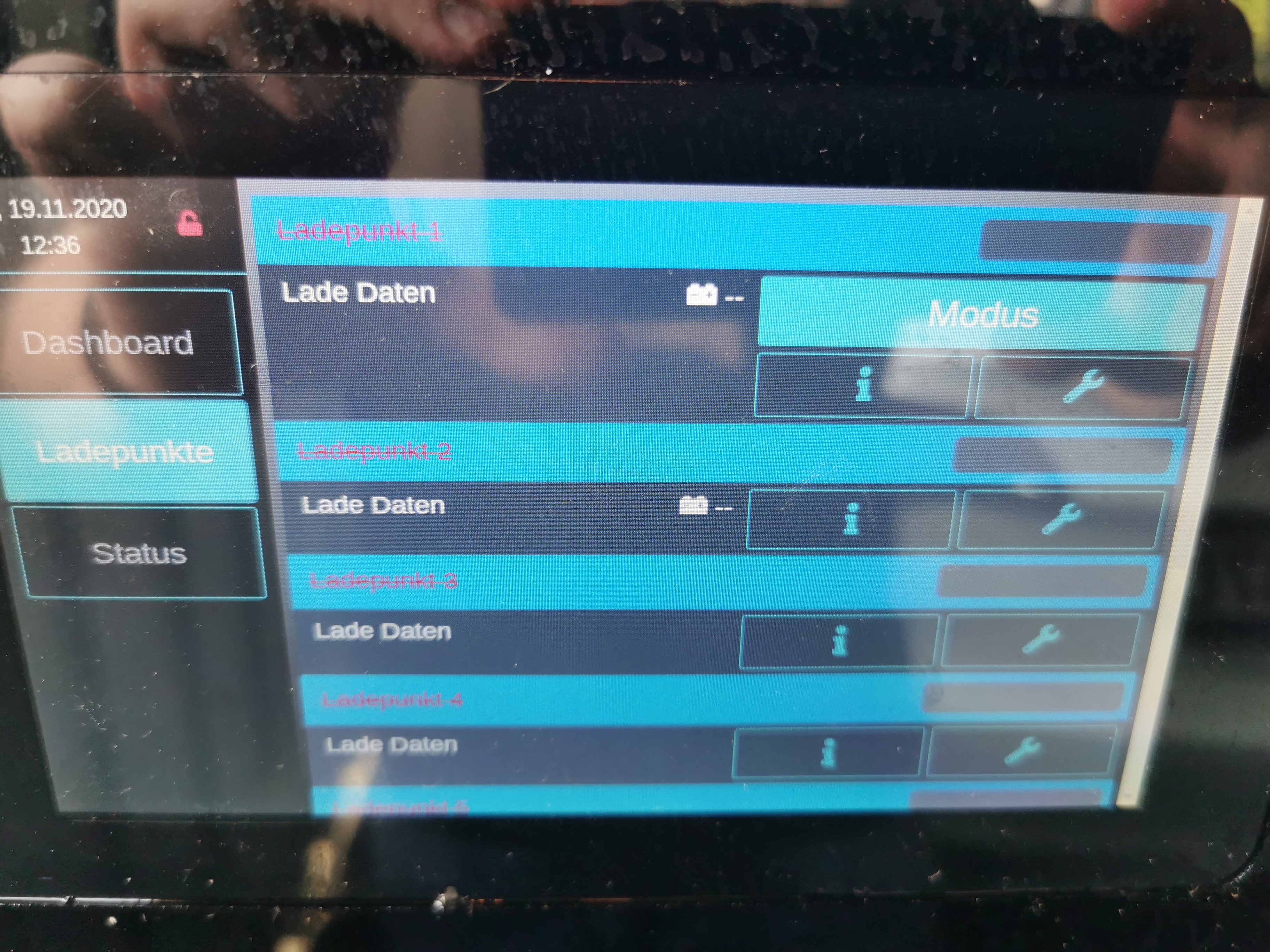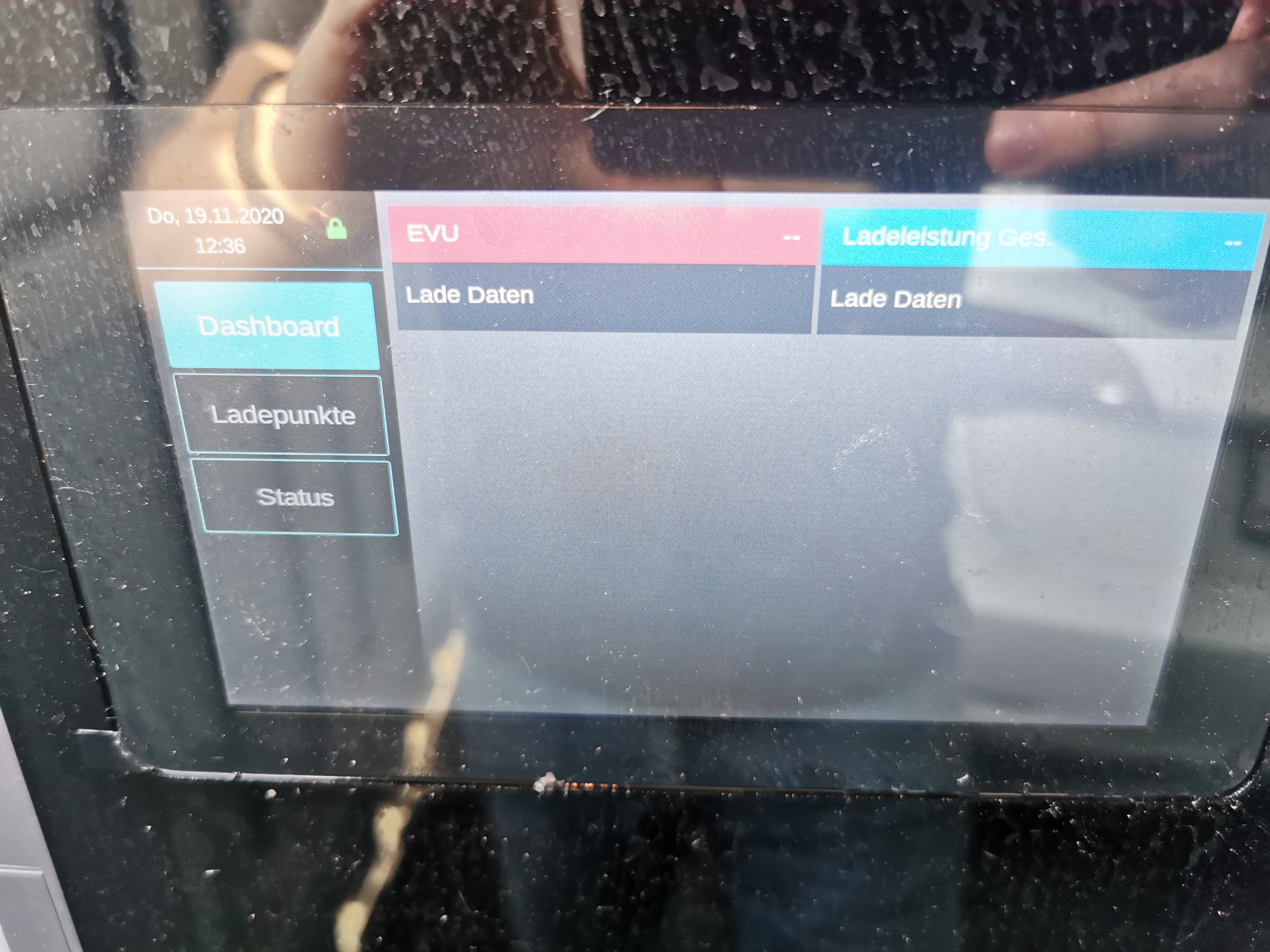 Eine Bedienung am Display ist ebenfalls nicht mehr möglich. Zwar lädt das Display, auch ein Entsperren funktioniert, es zieht jedoch keinerlei Daten (EVU, PV etc.), man kann die Lademodi nicht umstellen, das Datum verharrt auf 2020 usw.
