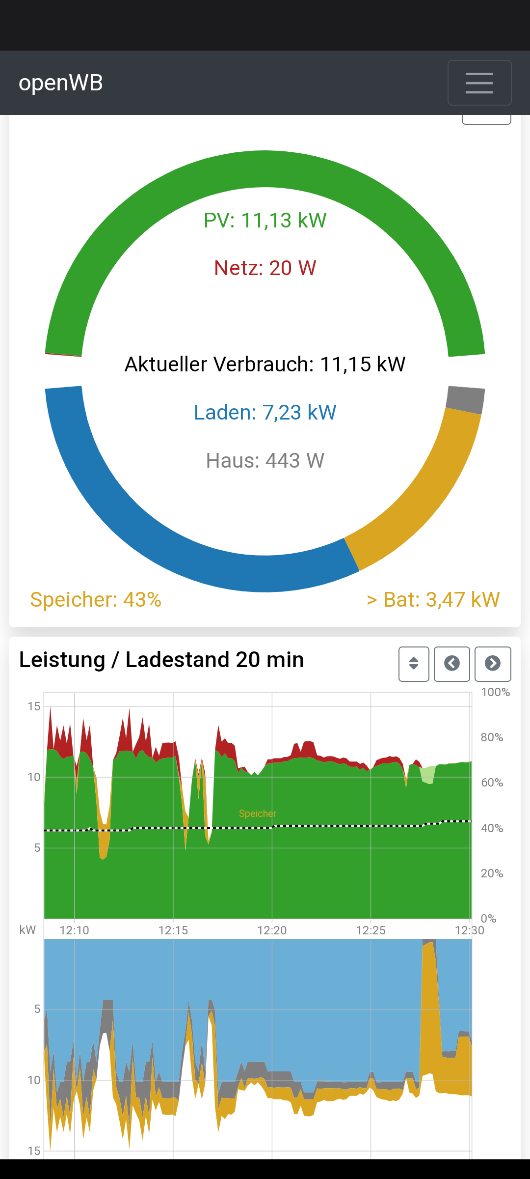 Das passiert sonst z.B wenn mein Dach mehr als 10kwh runter bringt, und ich die Leistung in Hausverbrauch und Batterieladen aufteilen muss um es komplett nutzen zu können. Da mehr vom Dach kommt als 10kwh zieht die Wallbox ohne Begrenzung aber voll auf 11 hoch, kommt ja theoretisch vom Dach, was dann praktisch im Netzbezug endet. Siehe Bild...