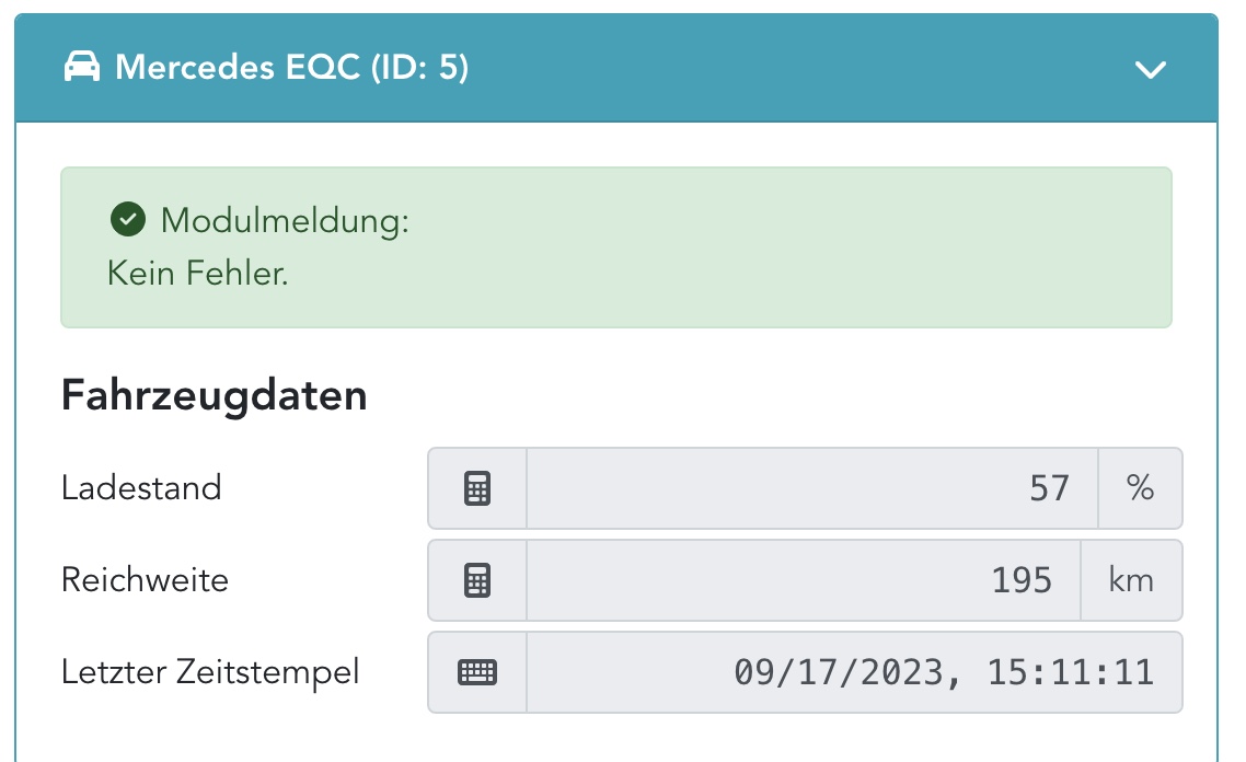 After the last Mercedes modifications, I got the SoC via the Iobroker module.