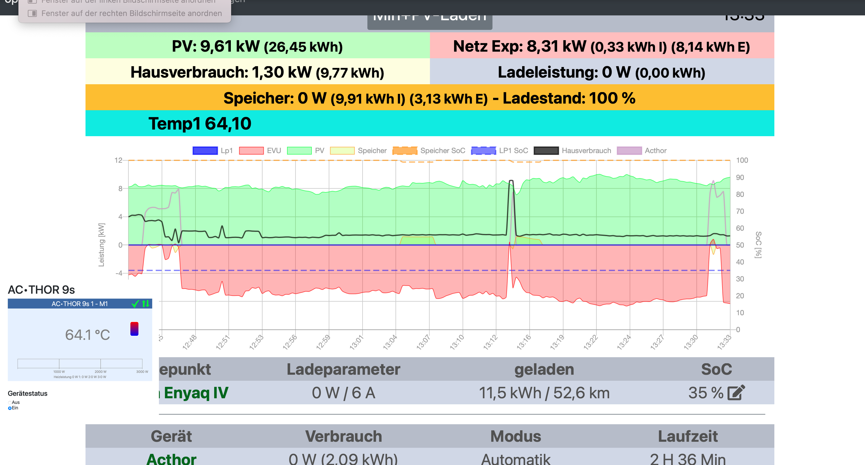 M.e. erachtens ist temp1 (wie angezeigt, 64.10 Grad) bei Acthor die Warmassertemperatur. Kann es sein, das der Acthor auf maximal 65 Grad eingestellt ist und somit abstellt mir der Stromaufnahme ?