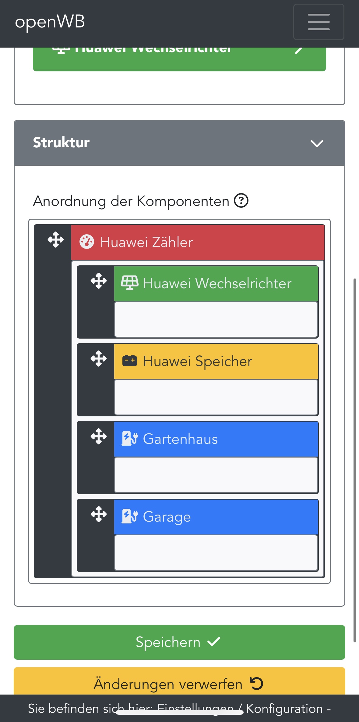 - von hier hole ich sie mit der Open WB mit der Huawei ab, bekomme aber nur die Daten des ersten WR Speicher und EVU (im HA habe ich beide)