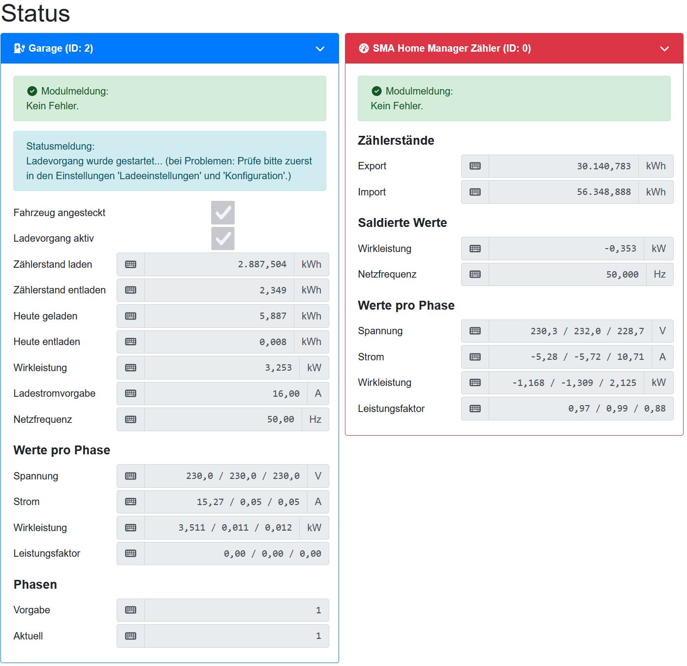 Und zu dem noch eine Abschaltschwelle angeben kann die dann aber nicht mehr greift.Andi hat geschrieben: Mo Okt 02, 2023 6:51 pmNein, bei mir ist ein Opel und ein Volvo zuhause und 2 series2... Und egal welcher wo dran hängt habe ich immer denselben Offset. Mit den neuen individuellen Regelparametern läuft es jetzt mit einer sauberen 0 Ausregelung am EVU Punkt! Nicht schön aber funktioniert.AnDaL hat geschrieben: Mo Okt 02, 2023 5:45 amHallo Andi,Andi hat geschrieben: So Okt 01, 2023 6:27 pm Kann ich bestätigen, irgendwas sorgt hier für einen Offset in der Regelung. Bei mir sind es ca 230W die ich manuell eintragen muss um eine saubere 0 Regelung zu bekommen. Und warum man ein min und ein max Wert bei der 2.x eingeführt hat erschließt sich mir auch nicht. Ich kenne bei Regelungen nur einen einzigen Sollwert.
