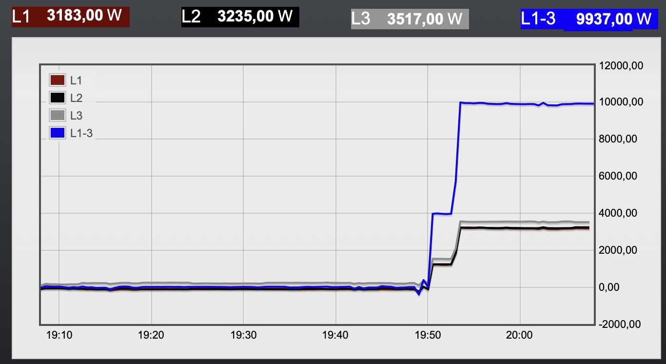 Der gesamte Bezug ist knapp 10 kW: