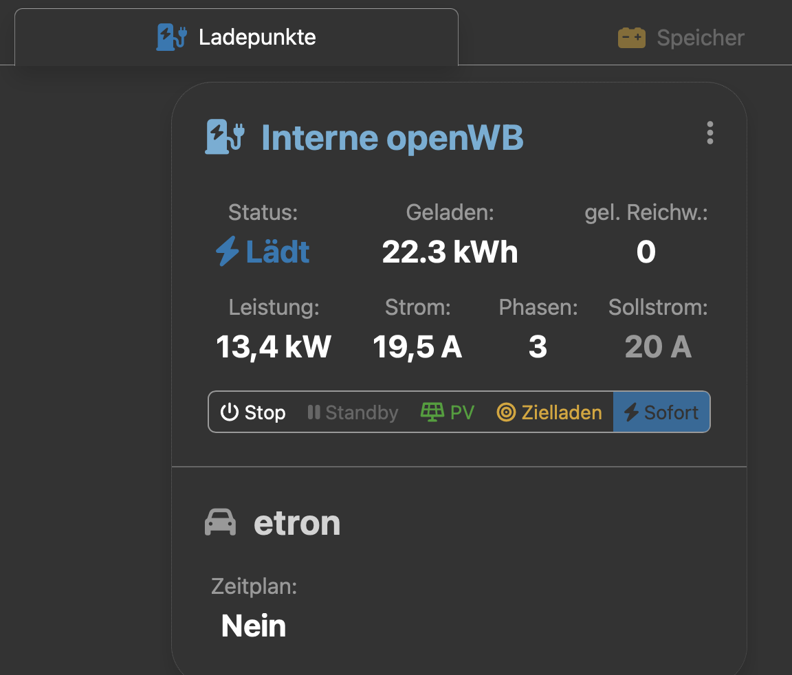 bei meiner OpenWP (2.1.2 Release) wird das Energie-Limit beim Sofort-Laden nicht eingehalten. Heute habe ich 20 kWh eingestellt und bei 22 kWh habe ich dann manuell gestoppt.
