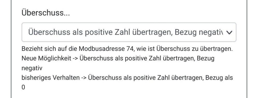 1. Option zur Übertragung von negativen Zahlenwerten bei Bezug. So kann der PV-Regler einen korrekten Soll-Ist-Vergleich durchführen.