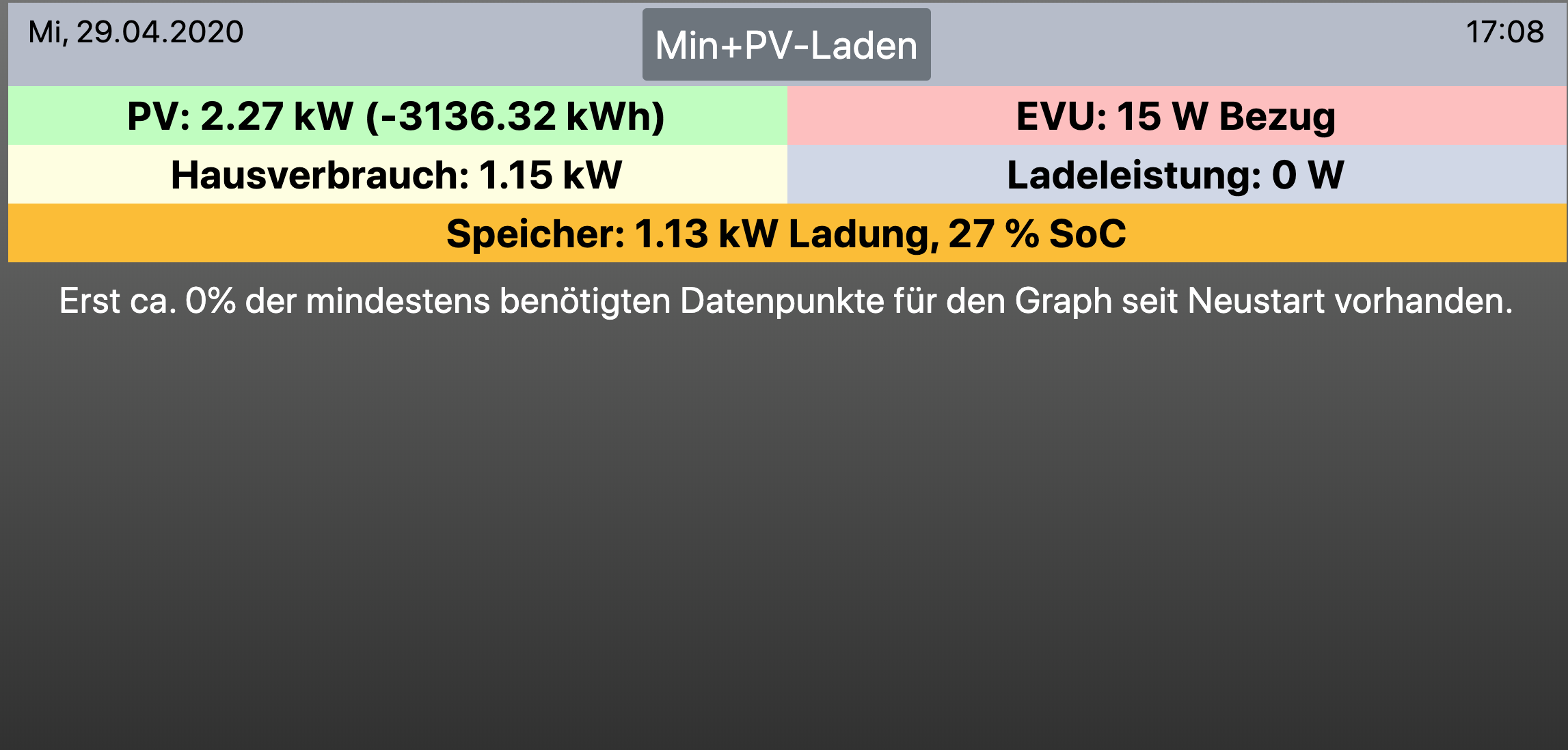Du musst für Dich eine sinnvolle Einstellung finden, die zur Leistung der PV-Anlage, dem Strombedarf des restlichen Haushalts, der verfügbaren Ladezeit und der nachzuladenen Energiemenge passt.