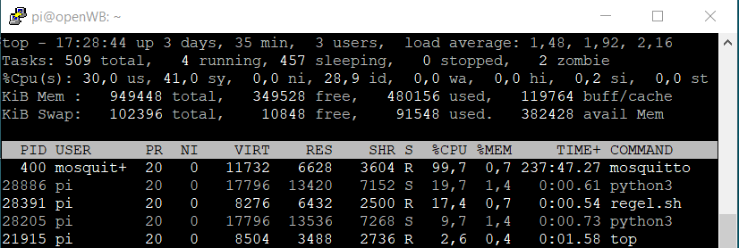 war gerade mal wieder soweit siehe Screenshot. Nach dem Neustart des Mosquitto Demons hat python viel zu tun :D