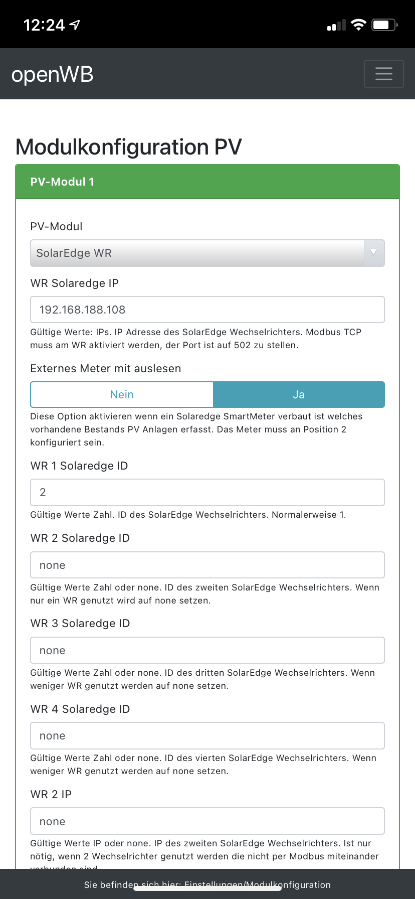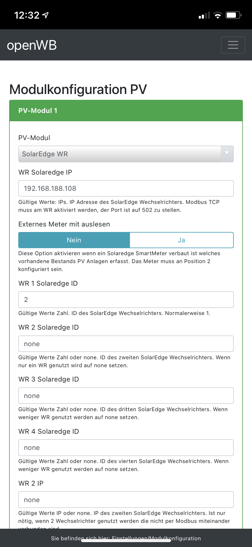 EVU hier habe ich die iP vom SolarEdge WR angegeben