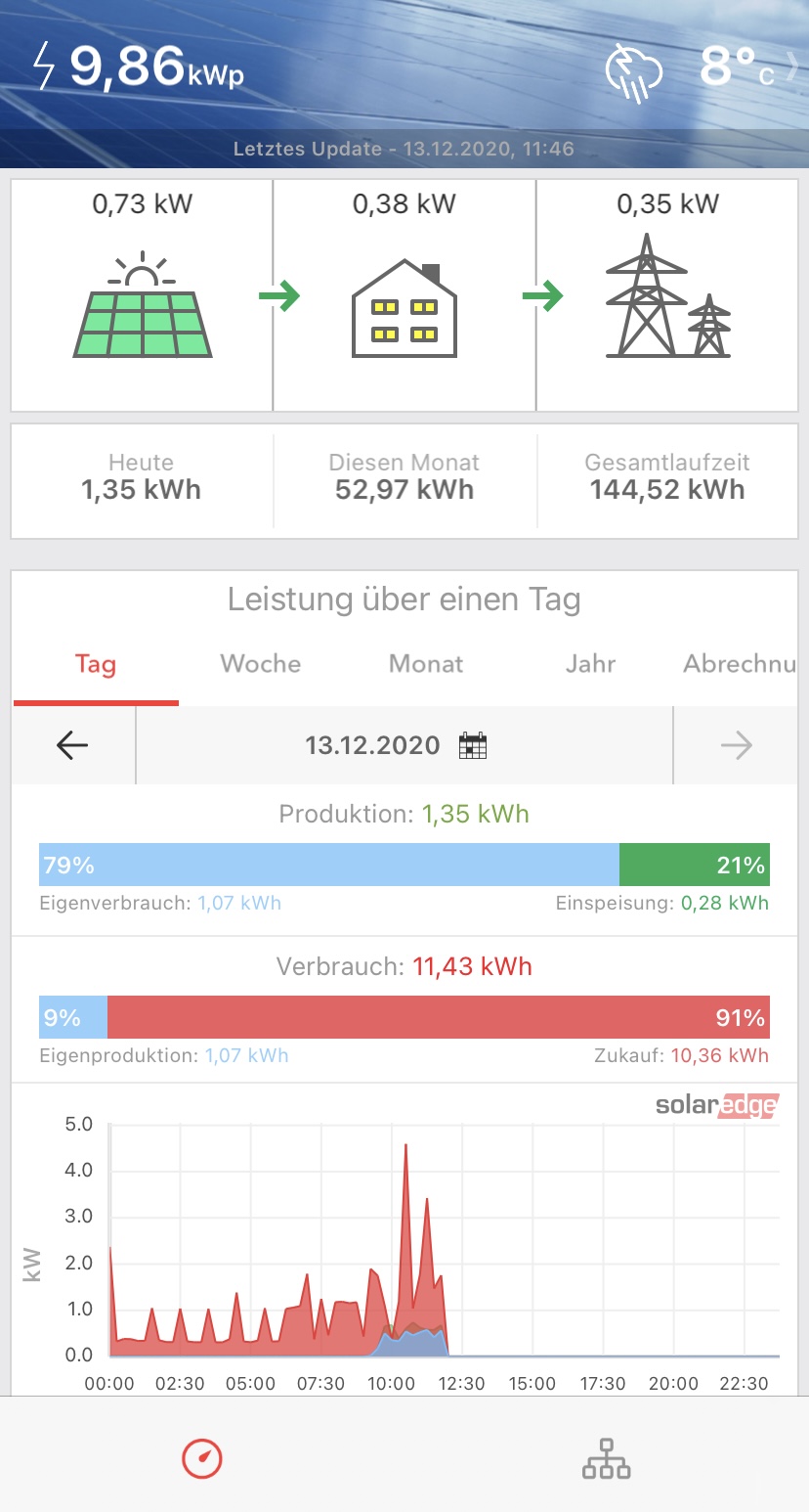 Im SolarEdge Monitoring zeigt er mir PV und Hausverbrauch auch an: