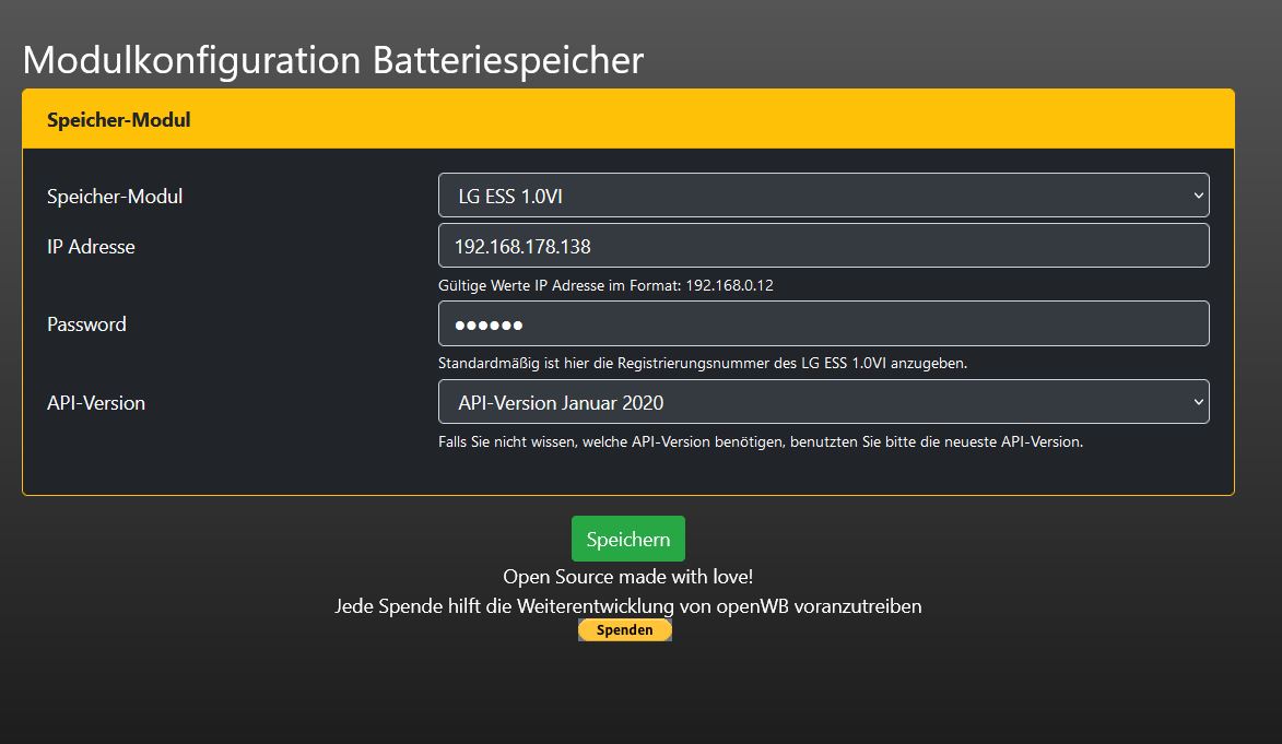 Moin, ich habe meine PV Anlage Solaredge mit LG Resu10h an die Wallbox angeschlossen bekommen. Das einzige was nicht funktioniert ist die Verbindung mit dem LG Speicher. Hat jemand eine Idee was ich falsch mach? Ich habe die IP vom Speicher verwendet. Habe aber auch schon die vom WR eingegeben. Leider immer ohne Erfolg. Danke für eure Hilfe.