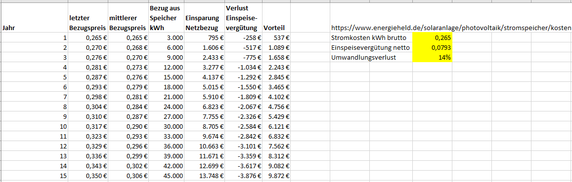 Außerdem rechne ich den Kaufpreis des Speichers Brutto, was man immer tun muss bei allen Steuermodellen, weil man am Ende den Eigenverbrauch wieder mit MwSt belegen muss.