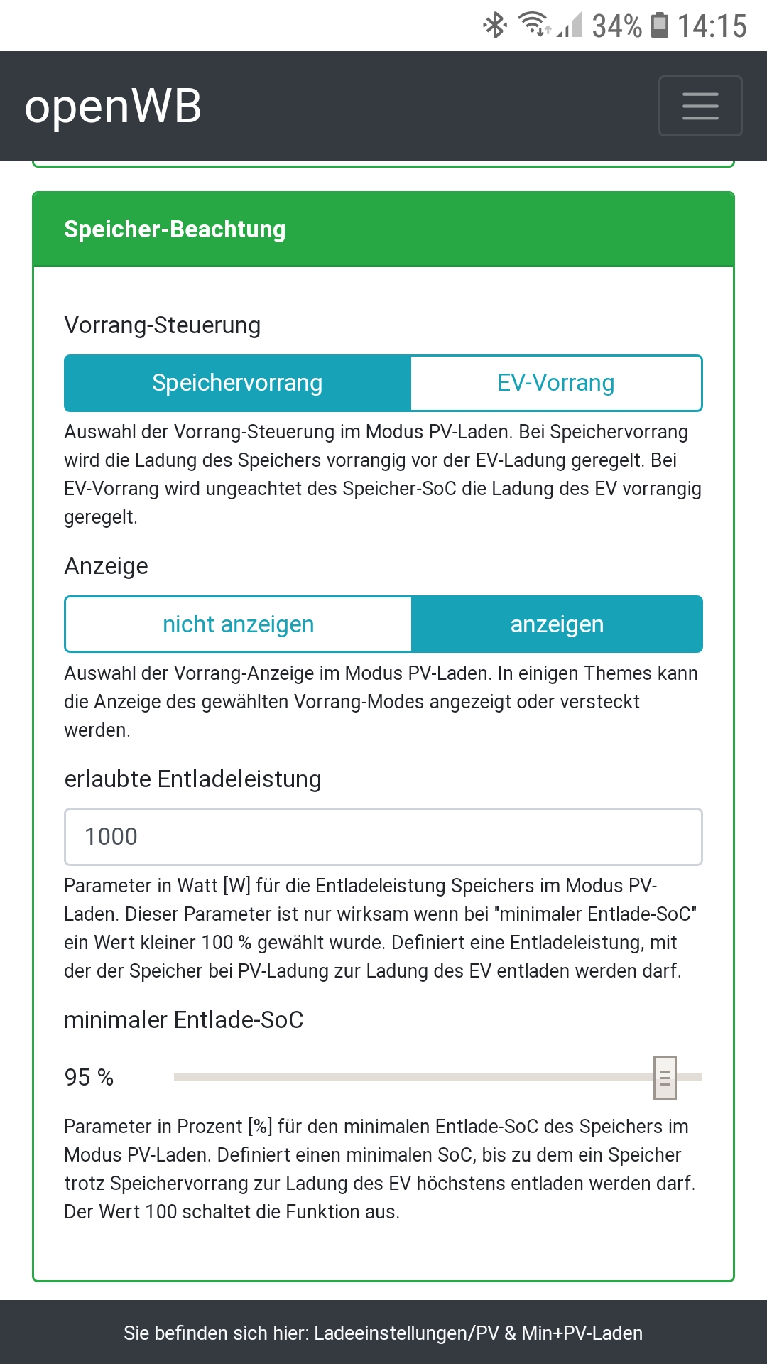 Naja nicht ganz. Ich hätte gern EV-Vorrang (sobald ich das EV anstecke, geht der PV-Überschuss ins EV) ohne den Speicher zu entladen. Das ist nicht zu konfigurieren, oder?