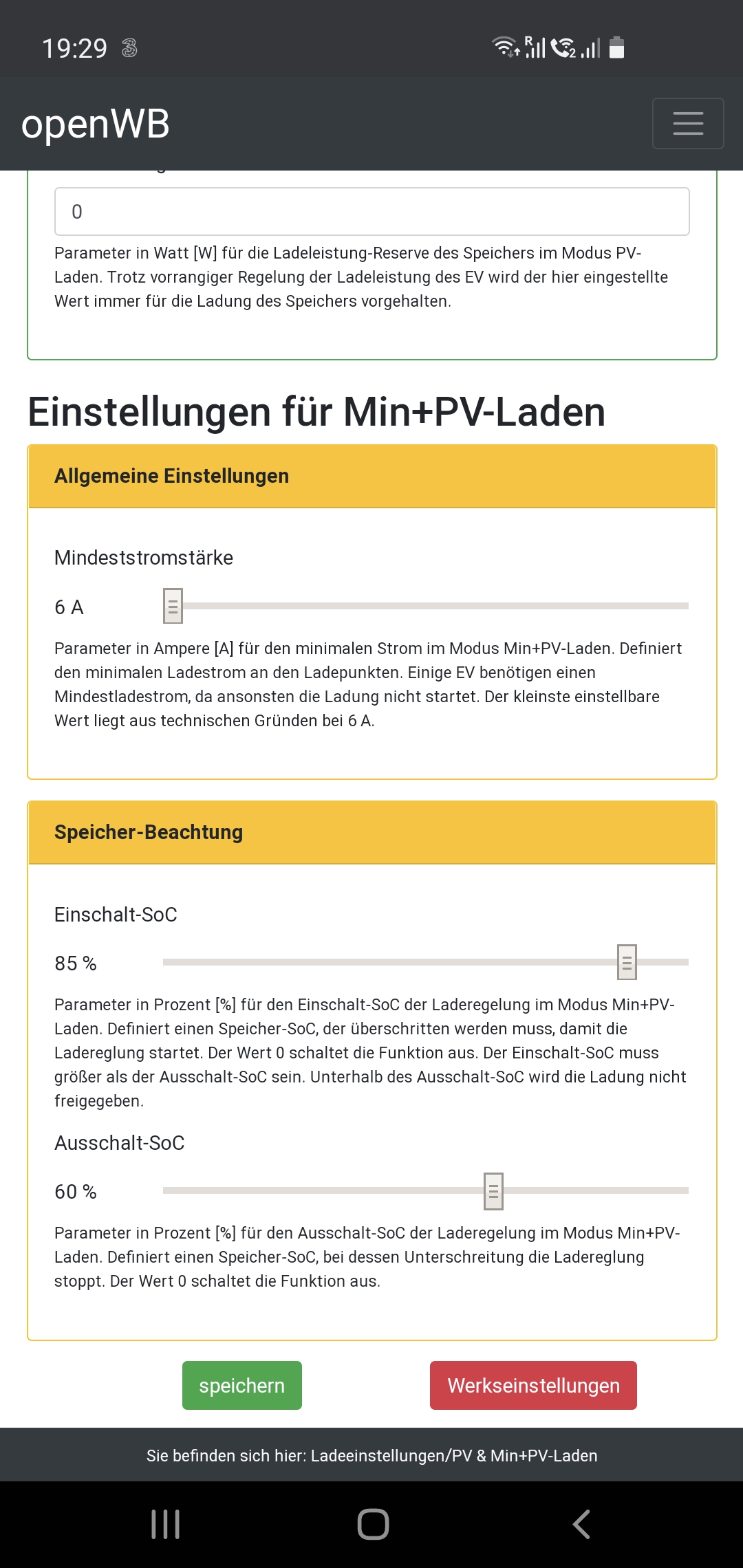 Ja, ich habe nur einen Ladepunkt. Mit der von dir aufgezeigten Einstellung saugt es meinen Hausakku leer, was ich aber mit der speziellen Einstellung bei Min+PV Laden im Punkt "Speicher-Beachtung" vermeiden kann. Es fehlt einfach hier die Max SOC Einstellung. Danke trotzdem.