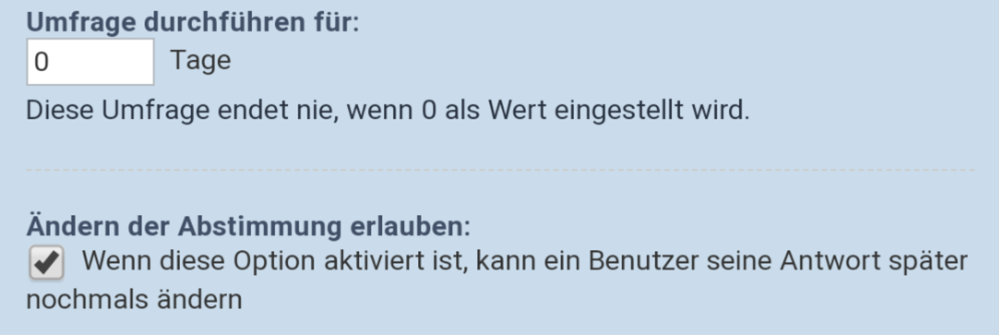 Wieso ist die vorbei? Ich könnte noch abstimmen. Es wurde auch keine Laufzeit hinterlegt. Ist aber auch meine erste Umfrage im Forum. Vielleicht habe ich etwas übersehen.