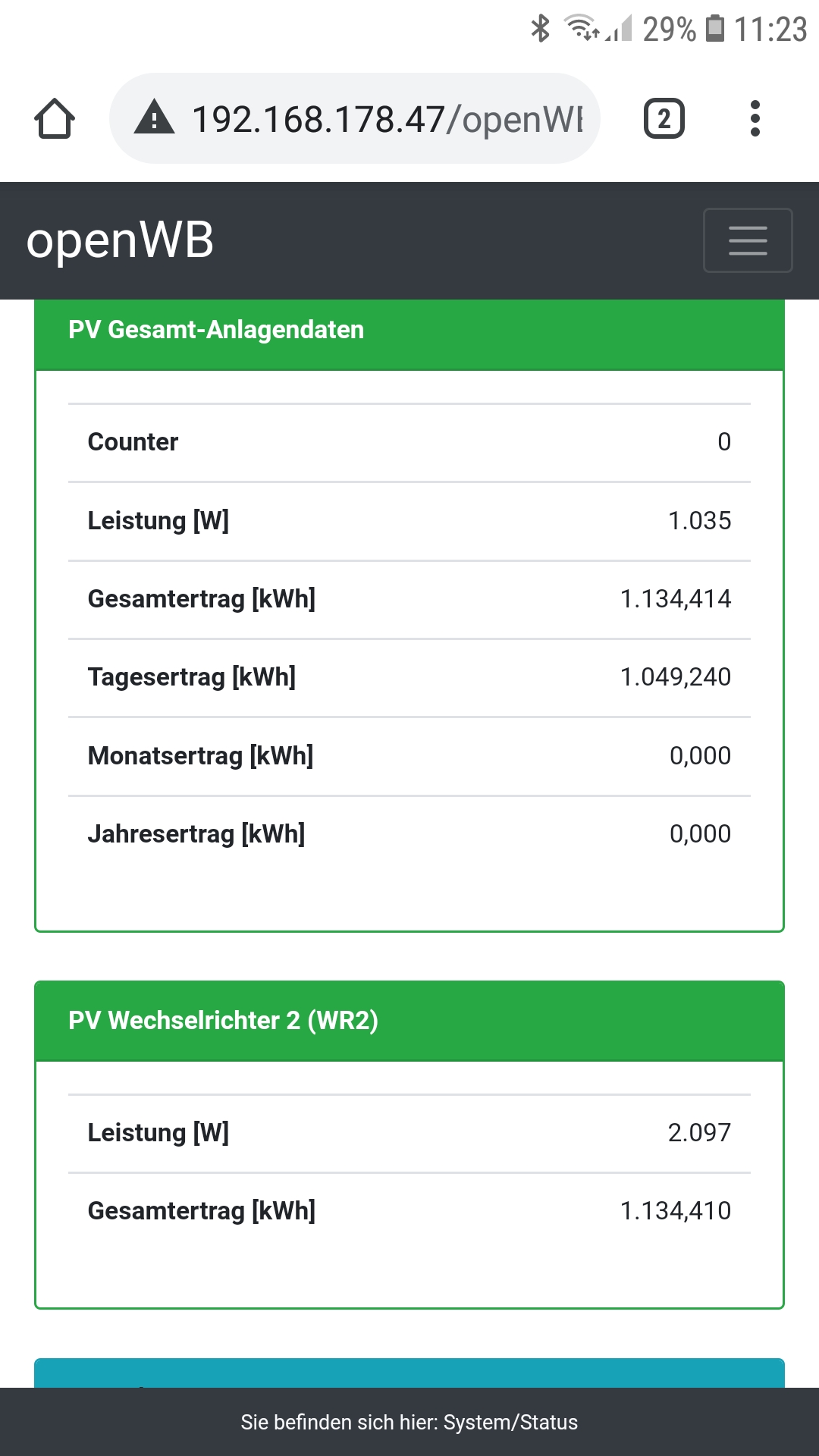 Die openWB läuft wieder - dank neuer SD- Karte, welche mir innerhalb eines Tages zugestellt wurde.