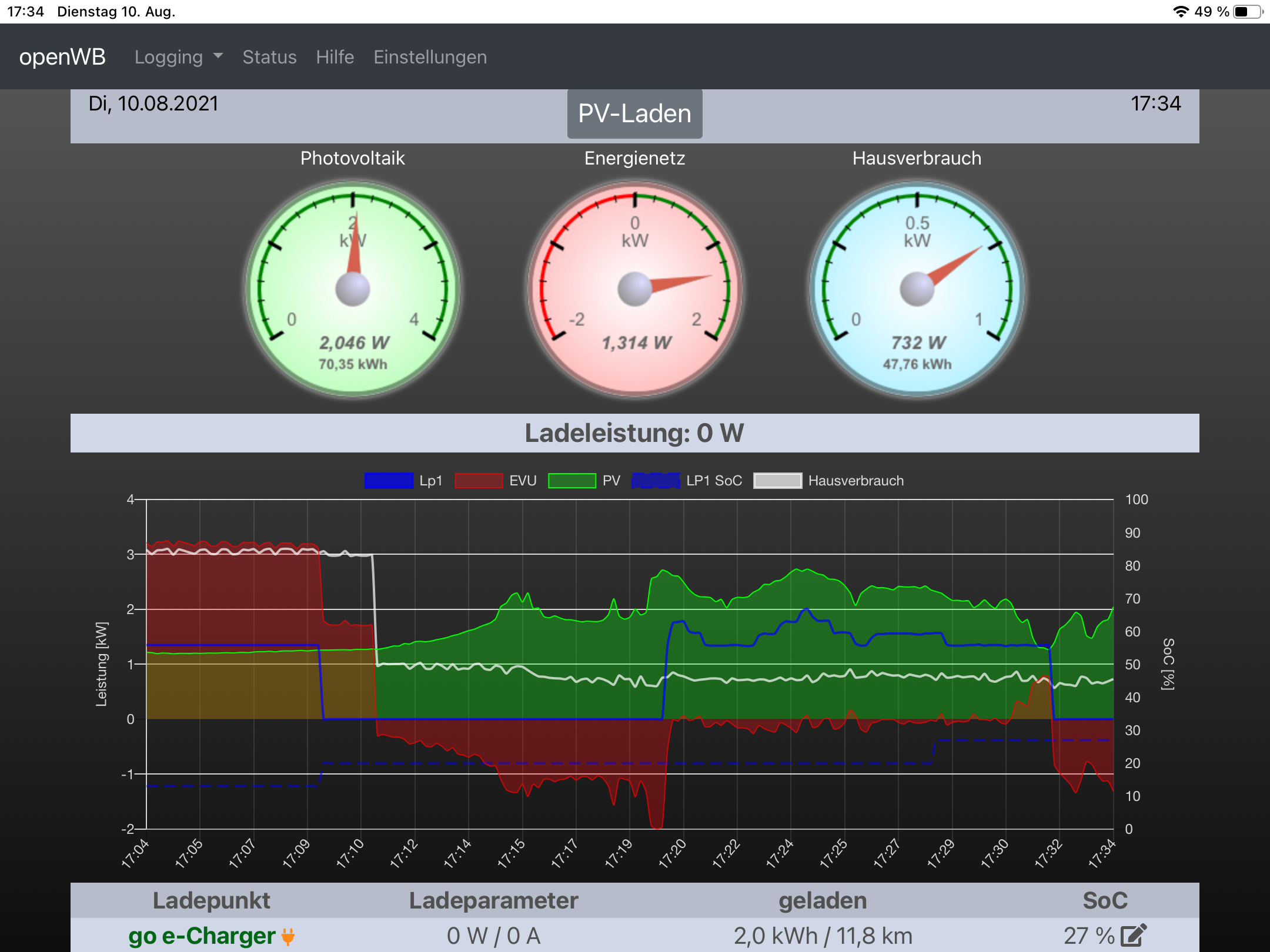 Was zeigt Dein Status unter LP an während Ladung und ohne Ladung?