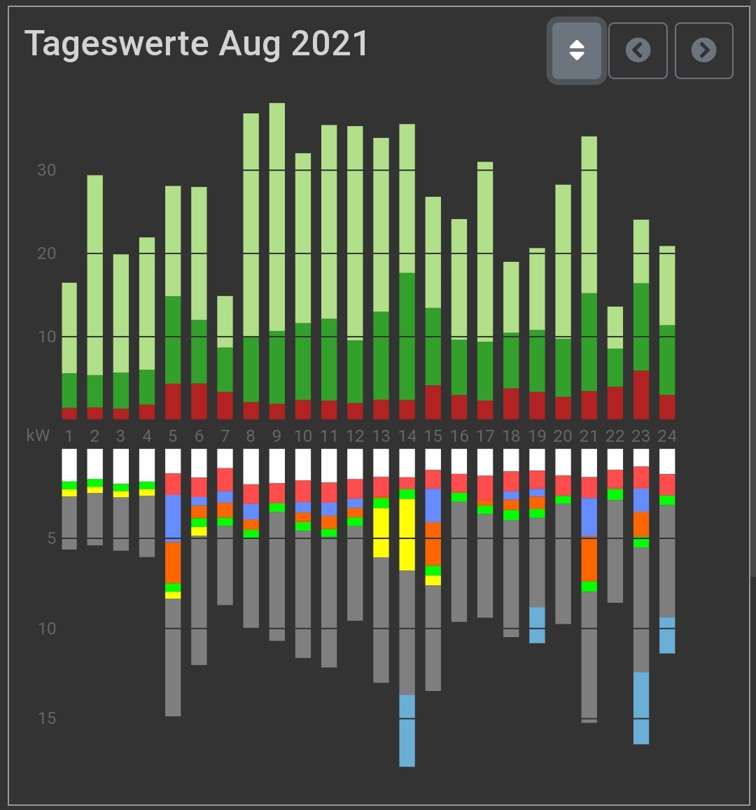 Nach Größe sortieren würde ich es nicht sondern in der gehabten Reihenfolge lassen. Ich sehe schon, das Feature "Im Hausverbrauch ja / nein" und Themes Colors beißt sich irgendwie oder ist hoch komplexelectron hat geschrieben: Do Aug 26, 2021 2:35 pm Das liesse sich recht schnell ändern, sind nur 2-3 Zeilen Code, die angepasst werden müssen. Ich kann es mal in eins der nächsten Nightlies stellen.