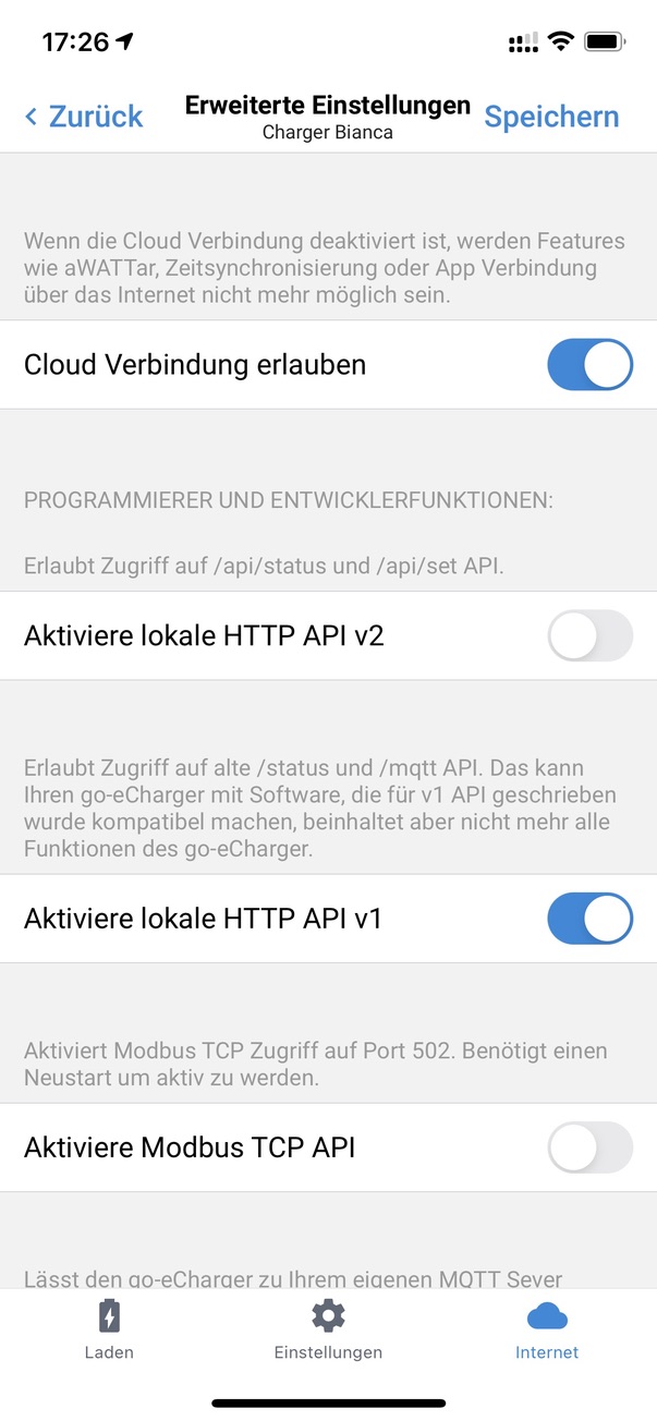 {"version":"B","tme":"1309211725","rbc":"32","rbt":"157592076","car":"2","amx":"32","amp":"32","err":"0","ast":"0","alw":"1","stp":"0","cbl":"32","pha":"63","fsp":"0","tma":[59,57],"dws":"9551858","dwo":"180","adi":"0","uby":"0","eto":"9611","wst":"3","fwv":"051.4","nrg":[223,238,235,4,289,0,0,66,0,0,1,674,100,10,11,97],"sse":"054122","wss":"AppNet","wke":"********","wen":"1","cdi":"0","tof":"101","tds":"1","lbr":"255","aho":"0","afi":"6","azo":"1","ama":"32","al1":"10","al2":"16","al3":"20","al4":"24","al5":"32","cid":"255","cch":"65535","cfi":"65280","lse":"1","ust":"0","wak":"********","r1x":"2","dto":"0","nmo":"0","sch":"AAAAAAAAAAAAAAAA","sdp":"0","eca":"0","ecr":"0","ecd":"0","ec4":"0","ec5":"0","ec6":"0","ec7":"0","ec8":"0","ec9":"0","ec1":"0","rca":"1","rcr":"","rcd":"","rc4":"","rc5":"","rc6":"","rc7":"","rc8":"","rc9":"","rc1":"","rna":"User 1","rnm":"User 2","rne":"User 3","rn4":"User 4","rn5":"User 5","rn6":"User 6","rn7":"User 7","rn8":"User 8","rn9":"User 9","rn1":"User 10","loe":0,"lot":32,"lom":6,"lop":50,"log":"","lof":0,"loa":0,"lch":134576}% Re: go-e Probleme nach Update