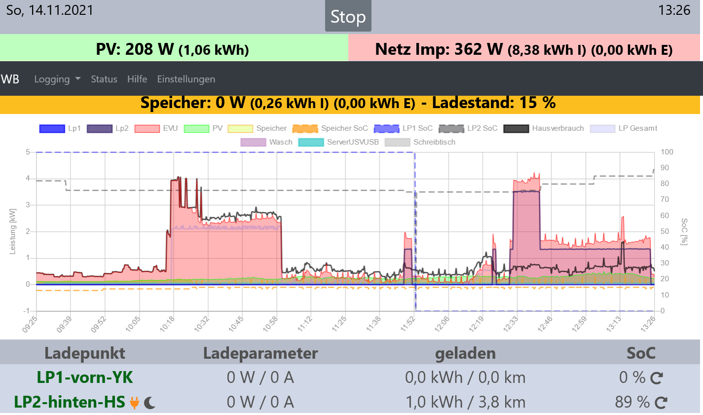 2021-11-15 23:41:46: LP1, Lademodus Stop. Stoppe Ladung (LV0)