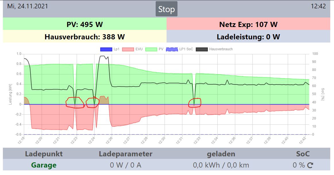 Reboot wurde auch gemacht. Seitdem habe ich ein komisches Verhalten welches auch von @krebs8 bemerkt wurde. Sehr gregelmäßig habe ich nun einen Hausverbrauch von 0. Das hatte ich definitiv vorher nicht: Ansonsten keine Veränderung.