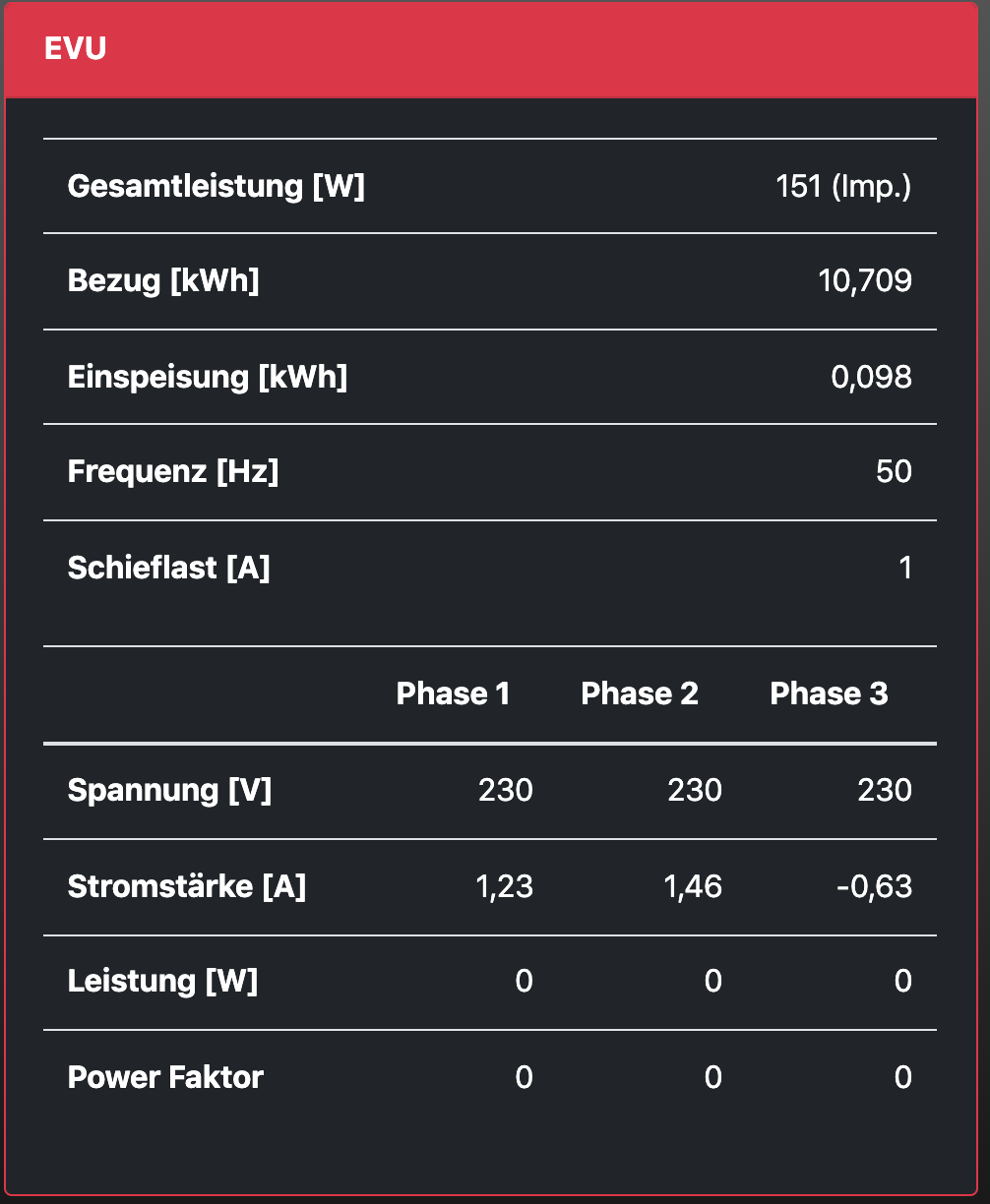 Mehr als der Watt- Wert steht da nicht drin und passt zum Status/EVU.