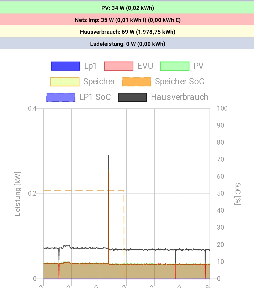 Auf der Startseite im Graph wird allerdings der EVU als 8 positiv angezeigt über der Null Linie und der PV Wert als 8 negativ