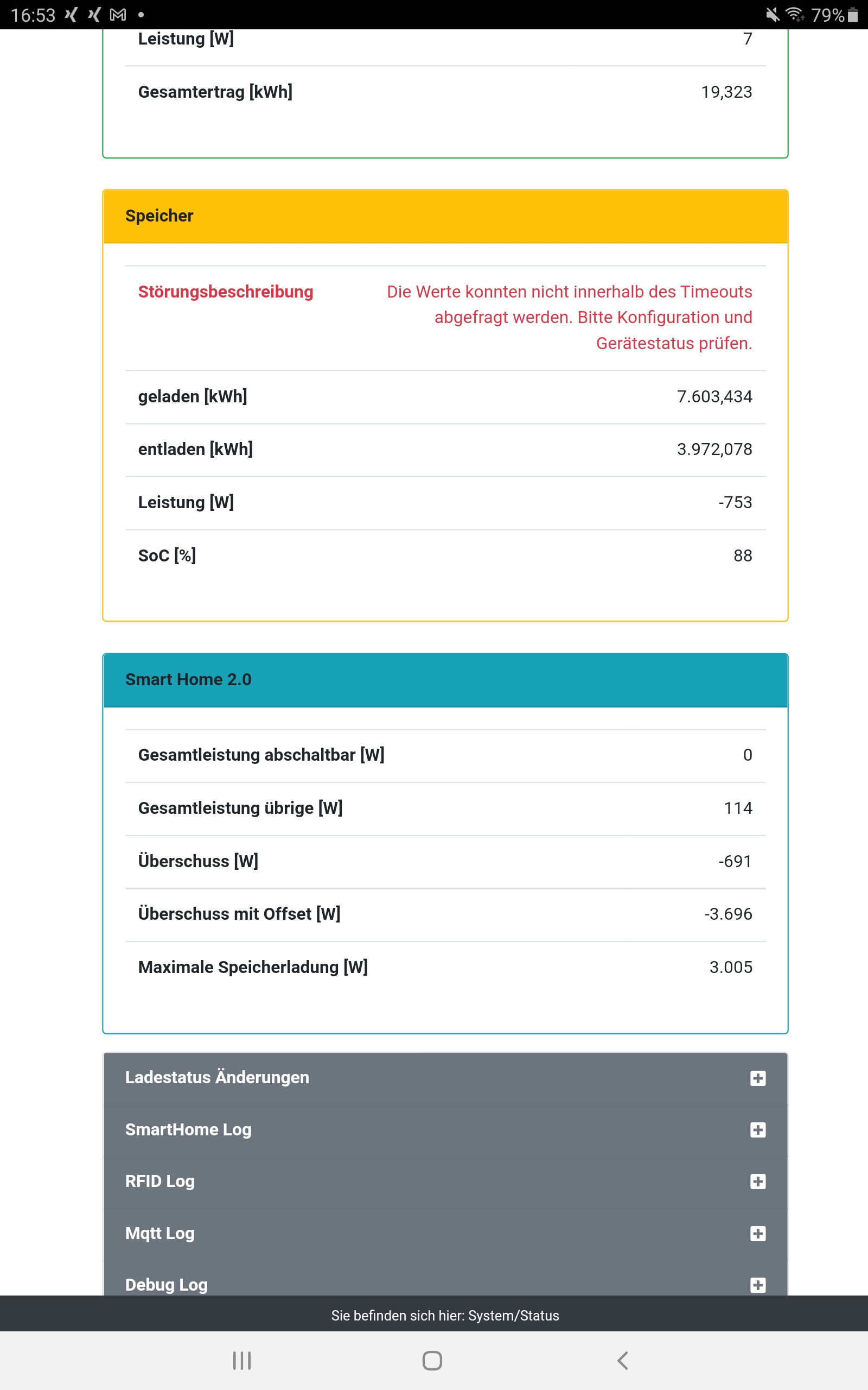 Die Summenbildung für den Hausverbrauch scheint mir auch nicht stimmig. ( Hausverbrauch teilweise kleiner als Smarthomeverbraucher