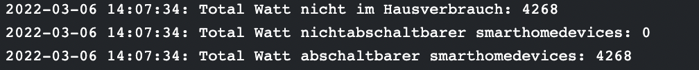Unter Status "abschaltbar," habe ich bei jetzigem Verbrauch festgestellt, das zumindest die 3 ( Shelly ), als abschaltbar angezeigt wird und die Smarthome1und 2( SDM630/Elgris 3 Phasen Zähler ),in Summe als nicht abschaltbar erscheinen.