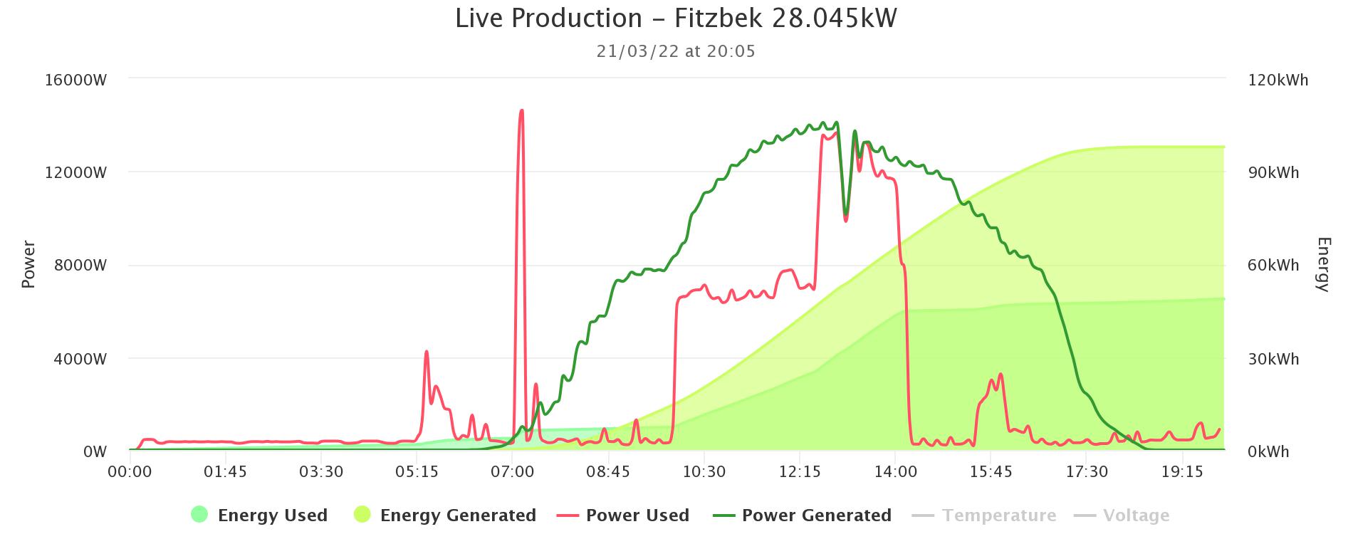 Wir haben gerade in SH einen extrem sonnigen März, sind sogar bei Ost/West bis 110kWh Ertrag/Tag erreichbar.