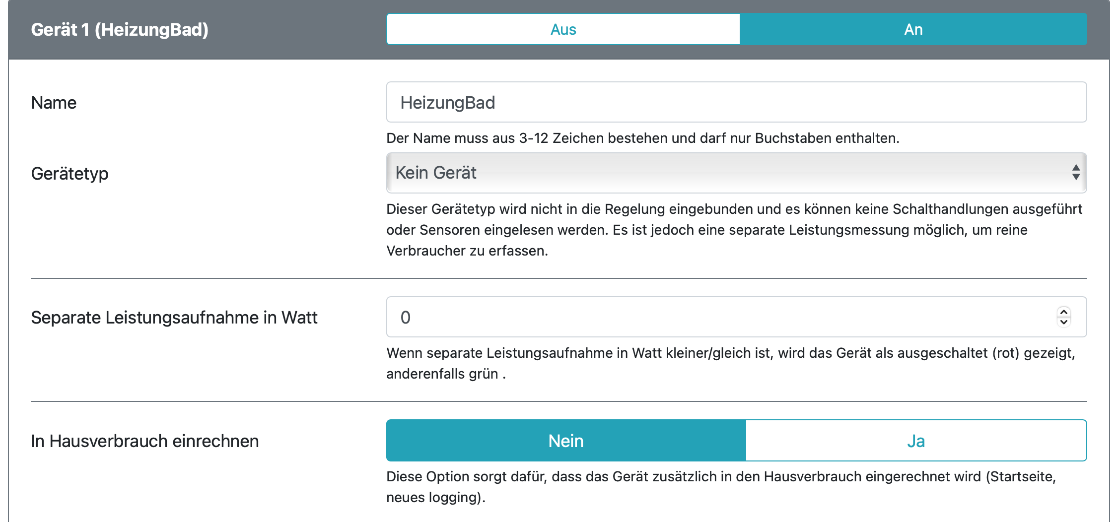 Hab schonmal probiert "Gerätetyp" = kein Gerät und "Separate Leistungsmessung für das Gerät"=Ja zu setzen, das bringt aber keine Änderung.