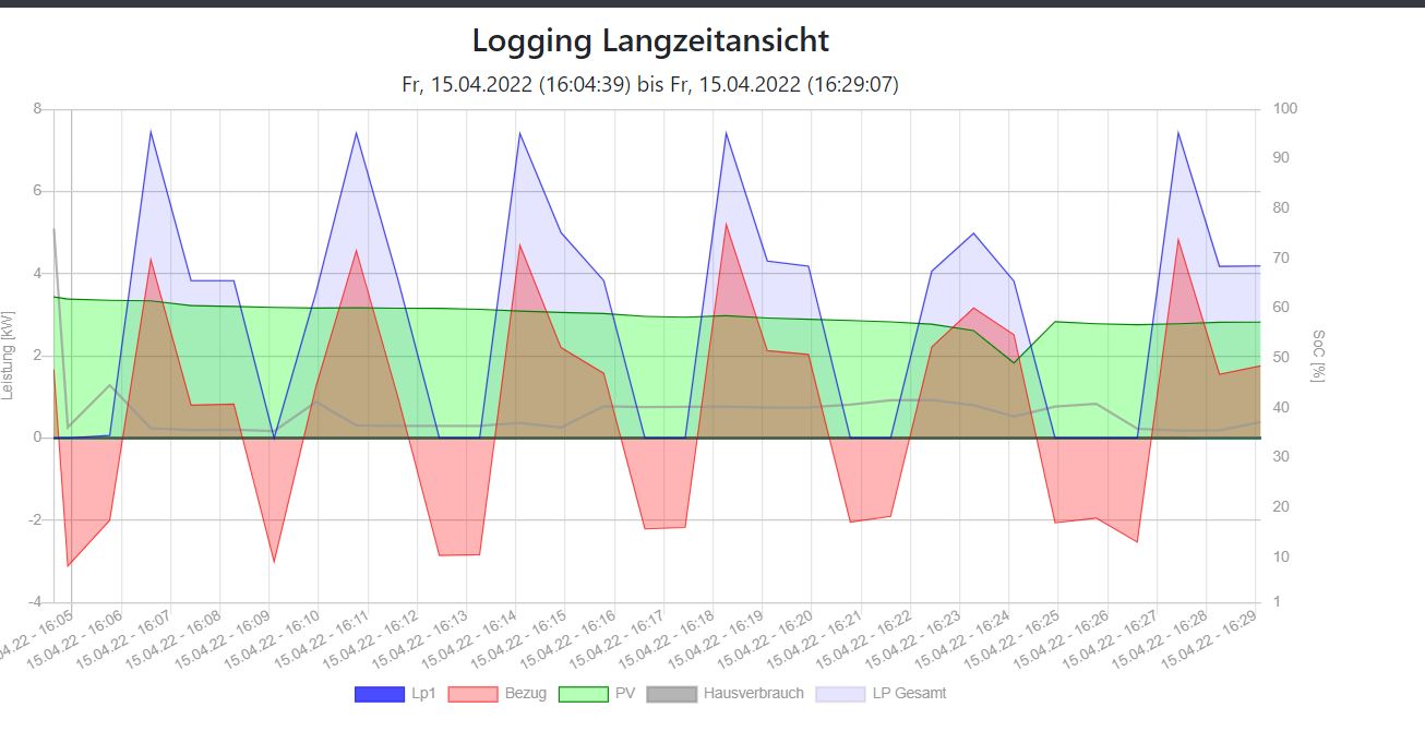 -) wenn die Ladung vom Auto startet.. zieht das auto plötzlich 5-7kw was dann natürlich über die erzeugung geht.. und die laderegelung schaltet wieder ab.