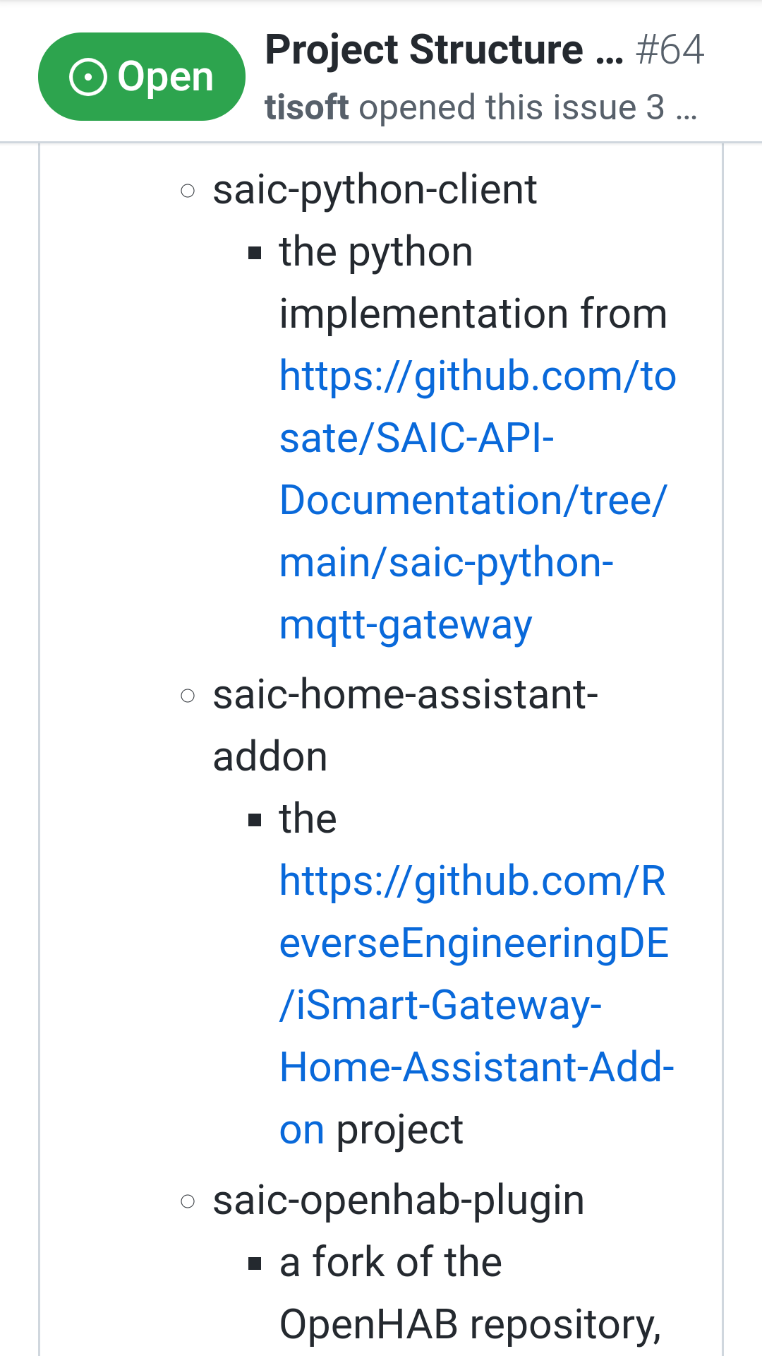 Hier sieht's besser aus, oder? https://github.com/tisoft/SAIC-API-Docu ... c-java-api